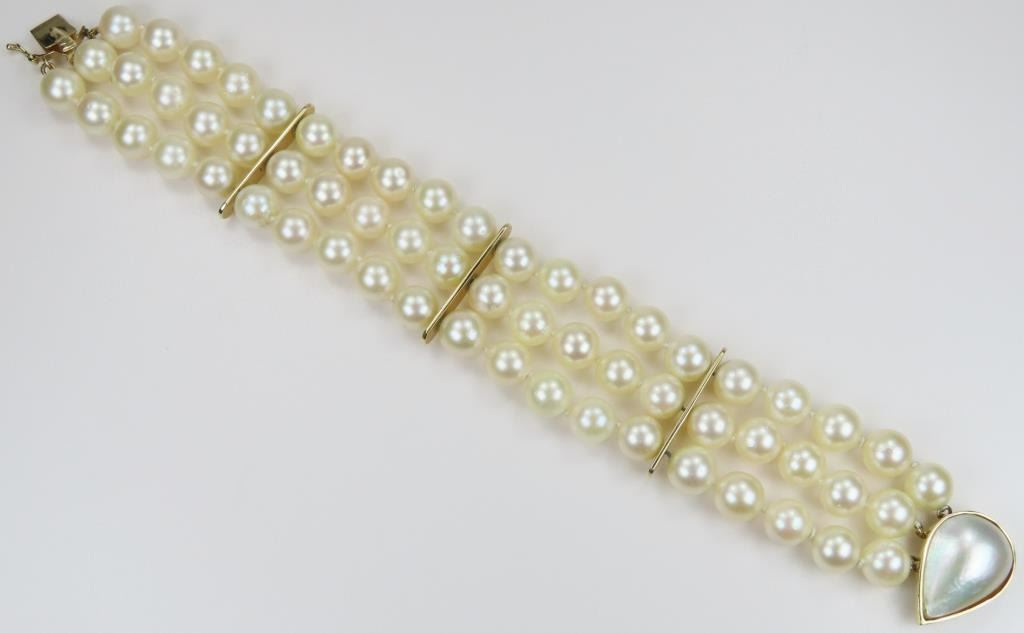 Lot 483a Gorgeous 3 Strand Cultured Pearl Bracelet
