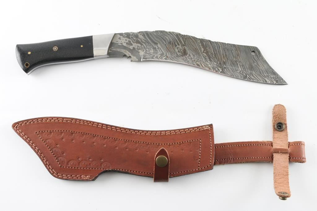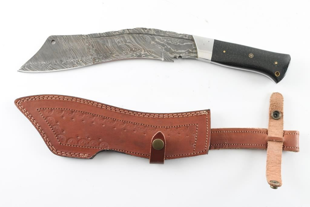 Kukri styled. Unmarked, Measures 9.5" in length. In good good condition , with black handle. (unknown material)