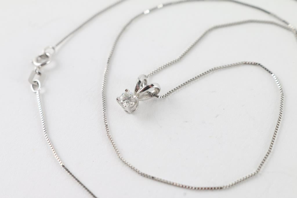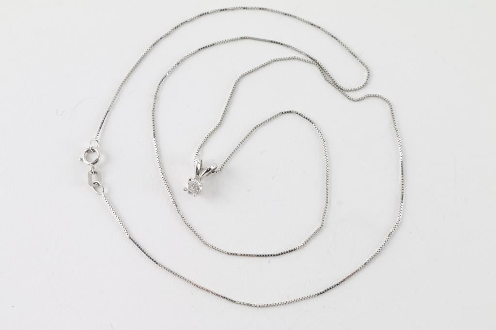 Featuring a round diamond, set in 14K white gold setting. Weighing approx 0.20 carats. "I" clarity.
