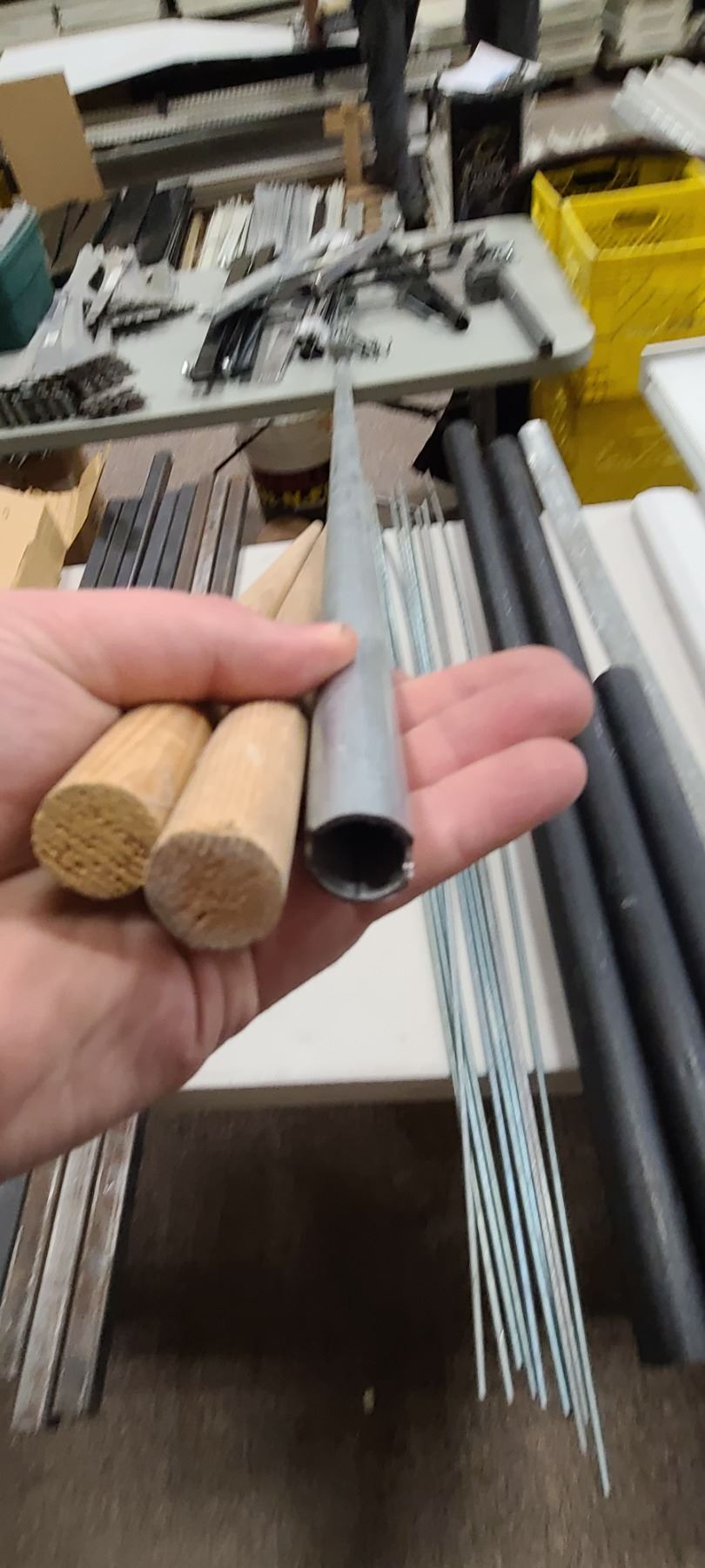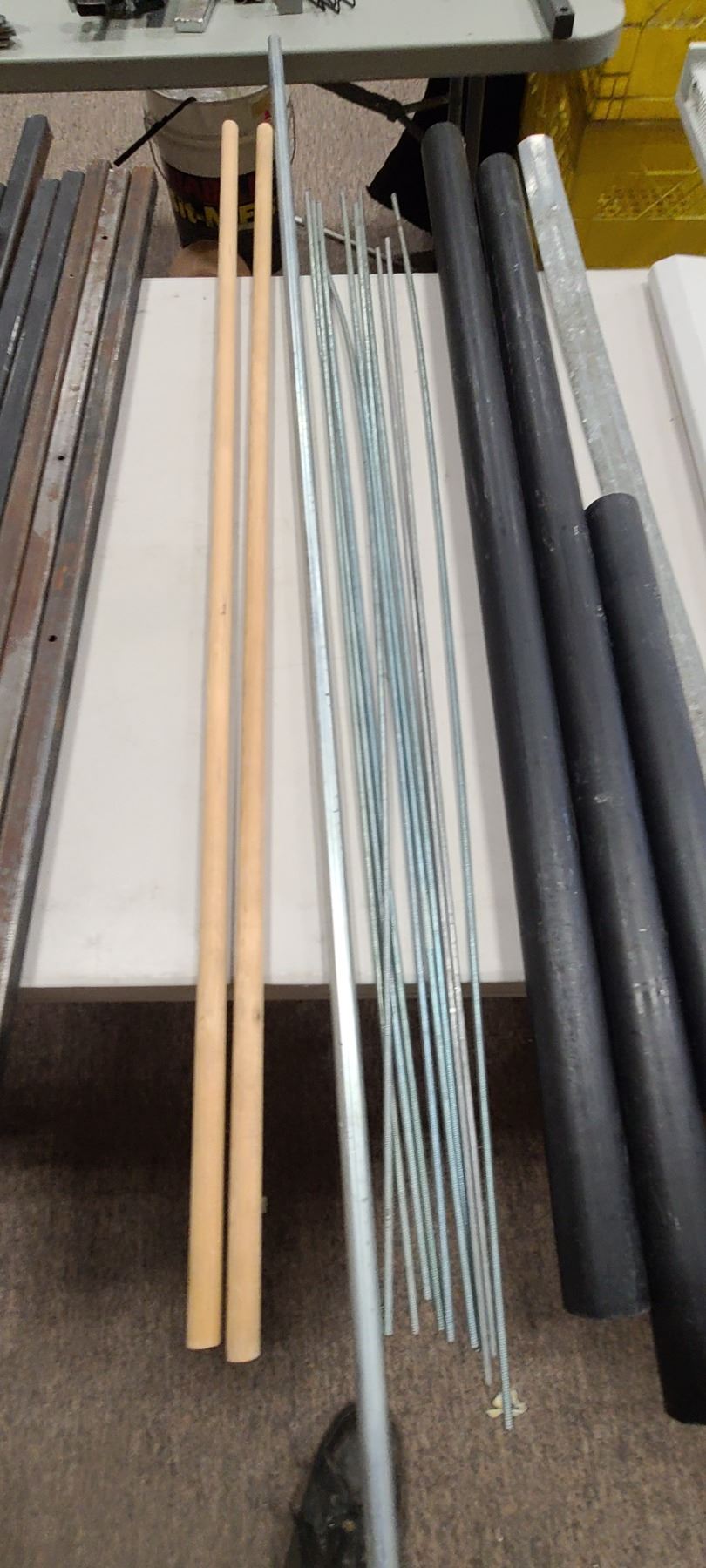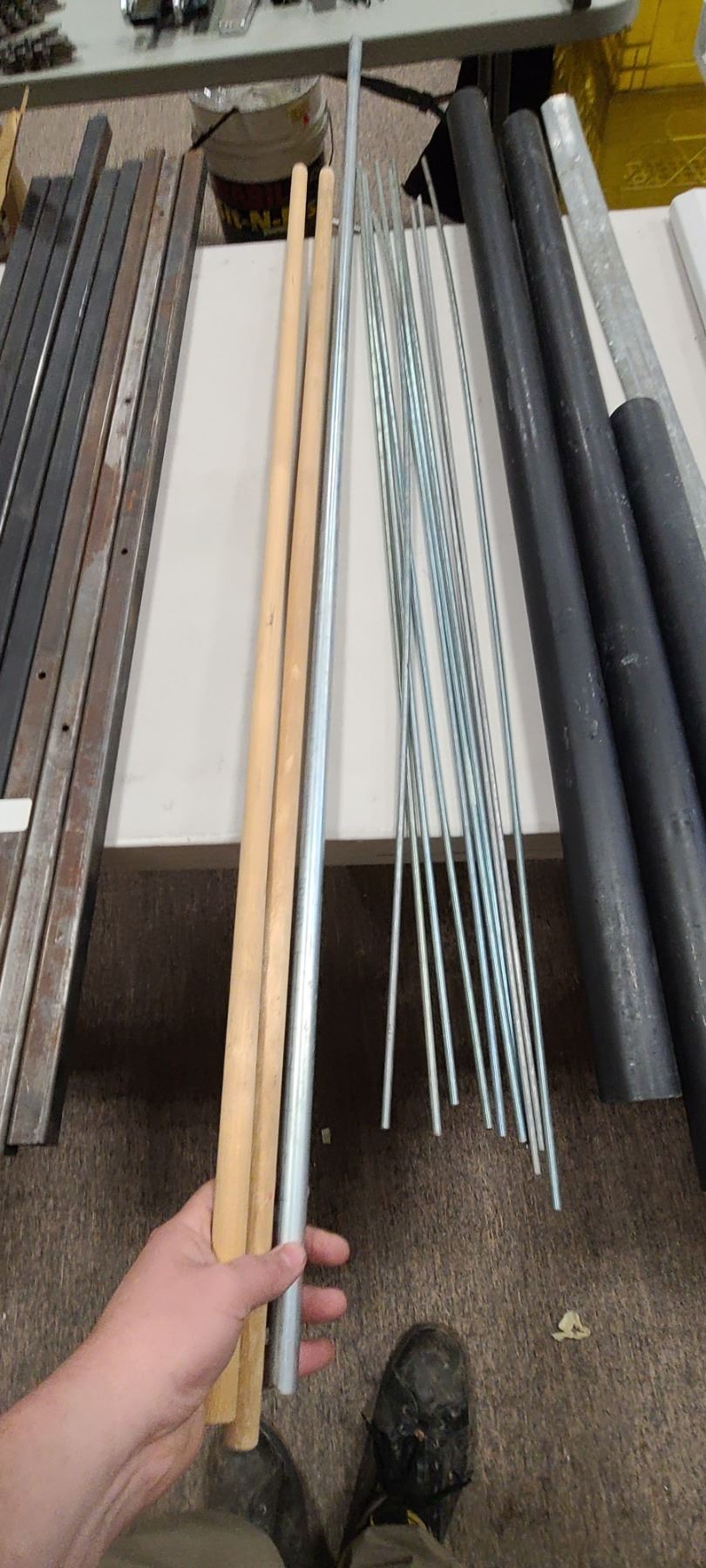 SIX PIECES OF 43 1/2" READY RODS , WOODEN DOWL AND TWO INCONDECENT LIGHT FIXTURES
