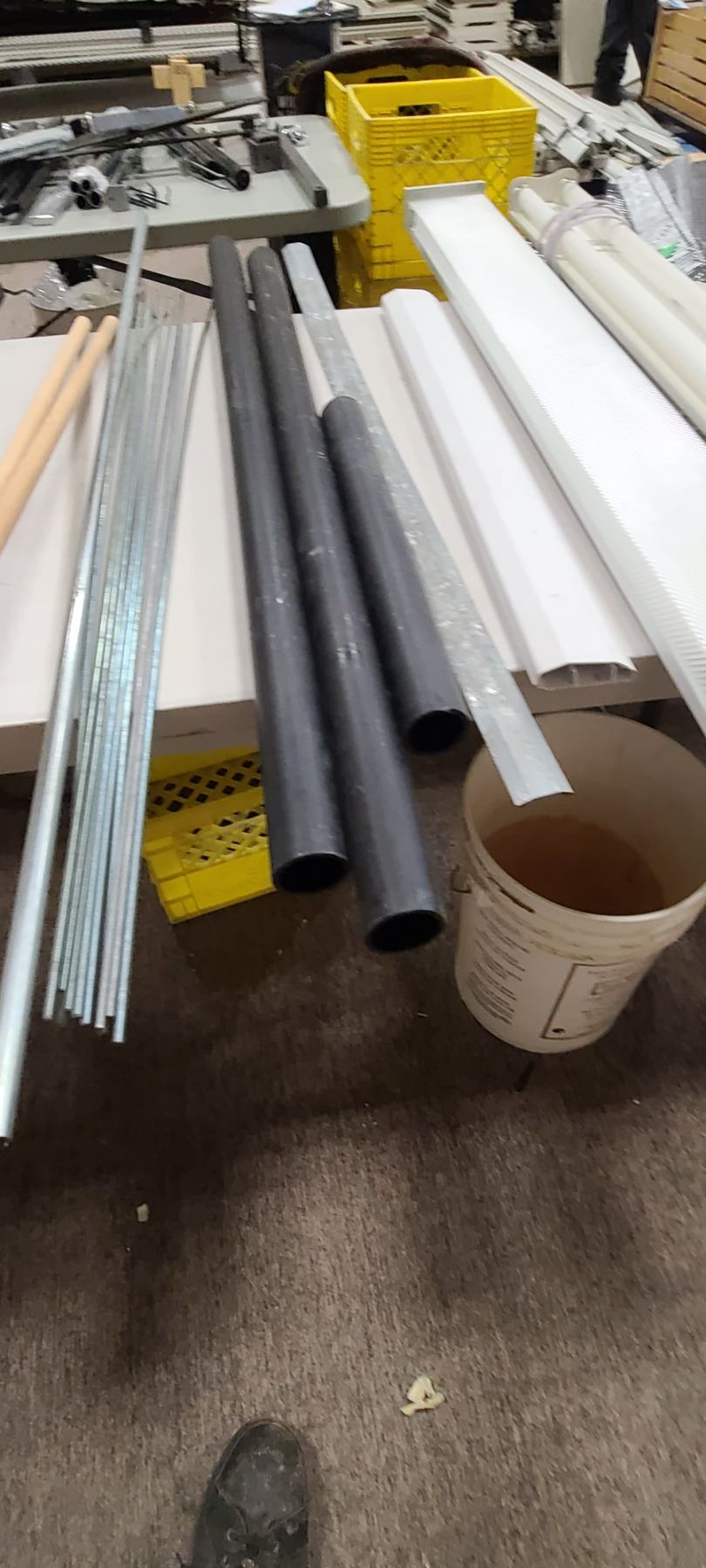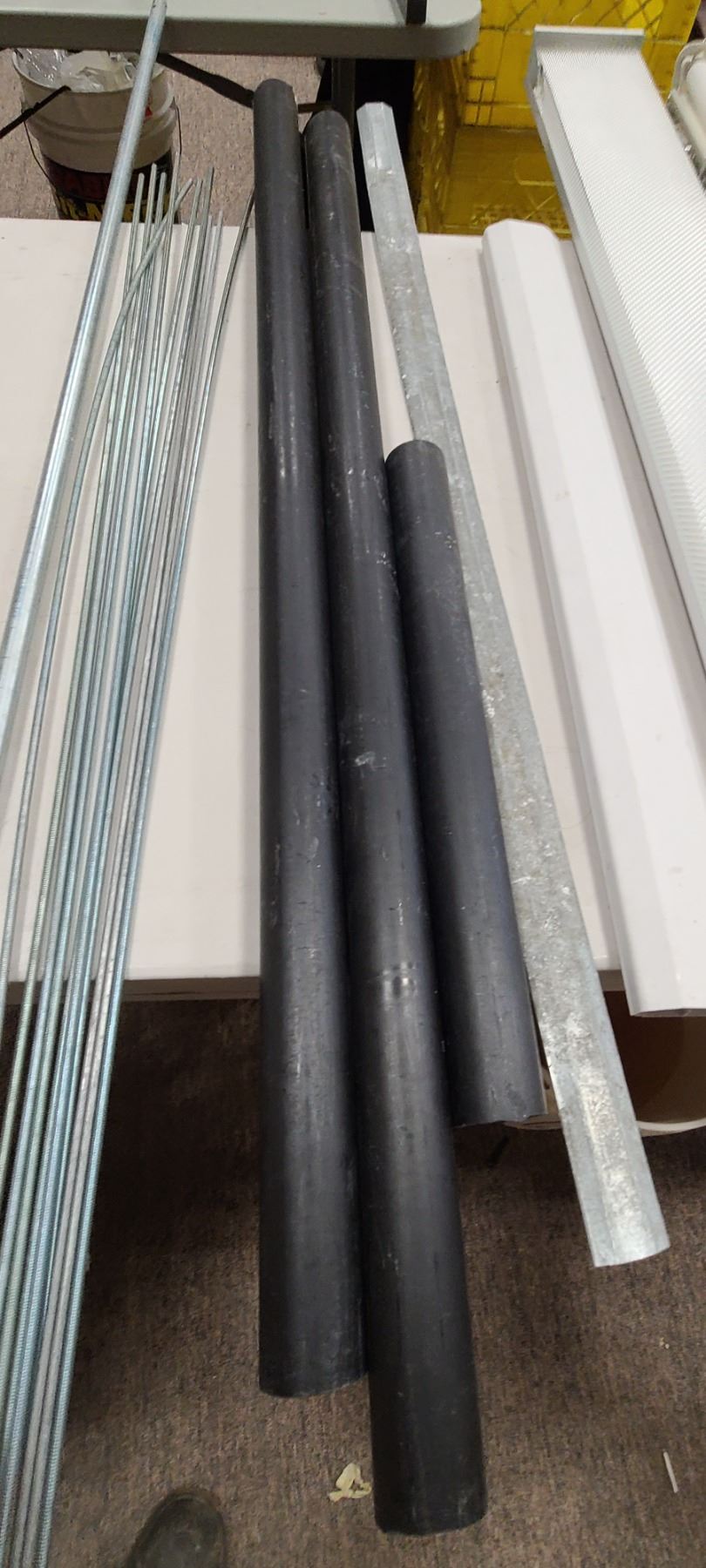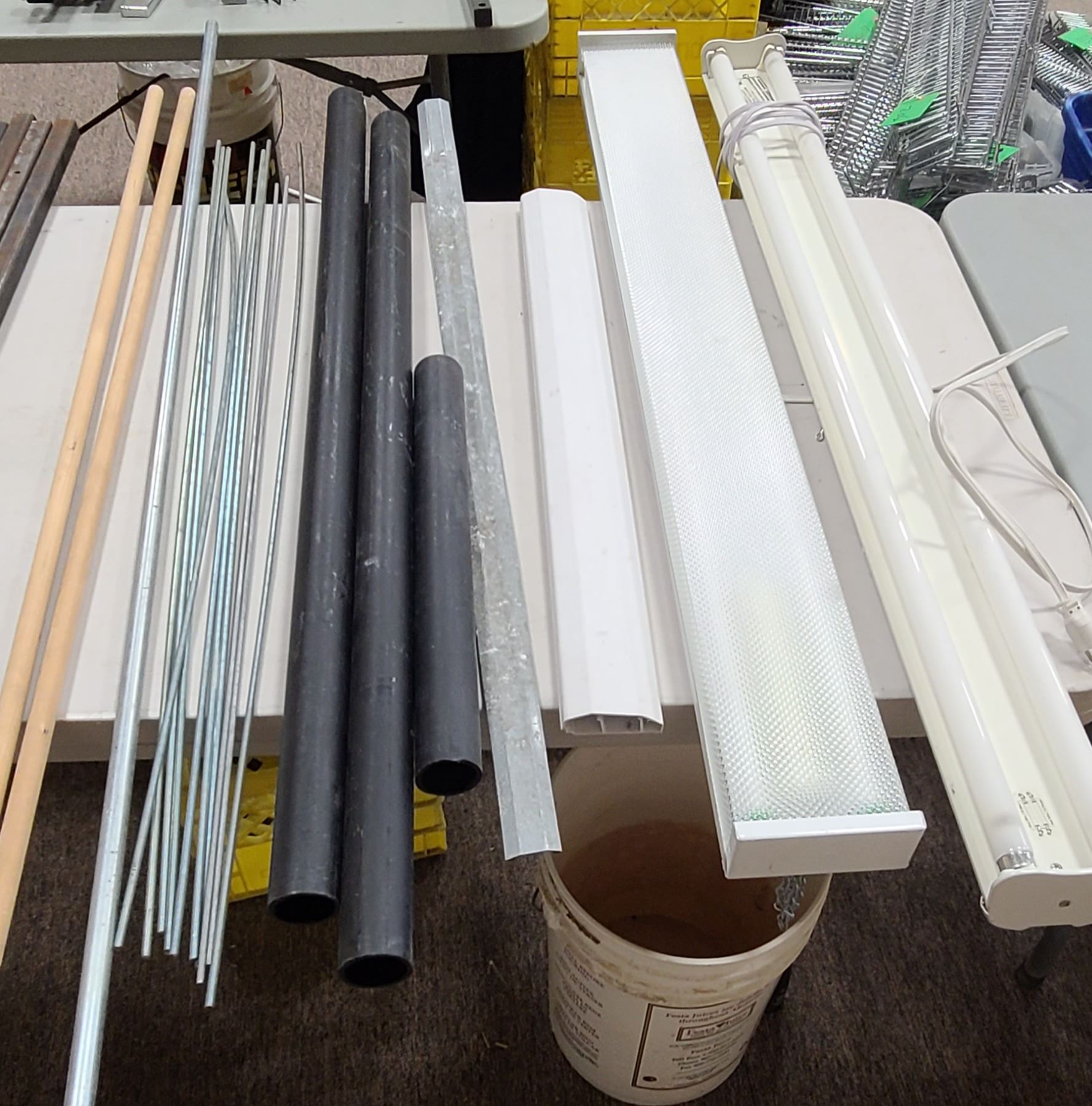 SIX PIECES OF 43 1/2" READY RODS , WOODEN DOWL AND TWO INCONDECENT LIGHT FIXTURES