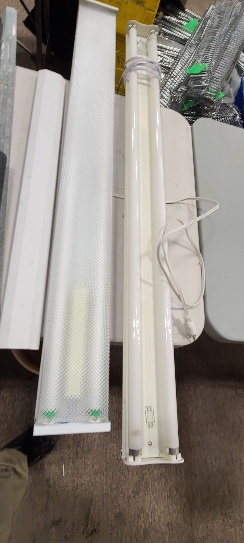 Lot 336 SIX PIECES OF 43 1/2" READY RODS , WOODEN DOWL AND TWO INCONDECENT LIGHT FIXTURES