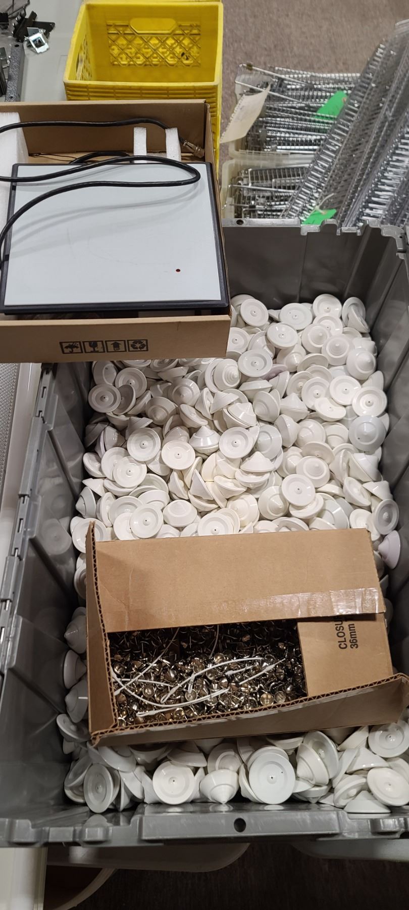 LARGE TOTE OF ELECTRONIC SECURITY/MAGNET TAGS AND EAS DEACTIVATOR