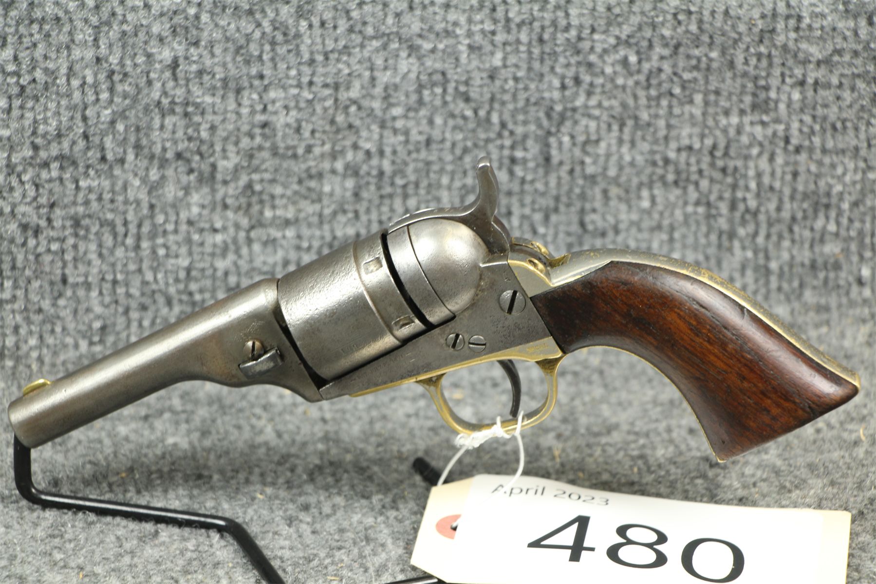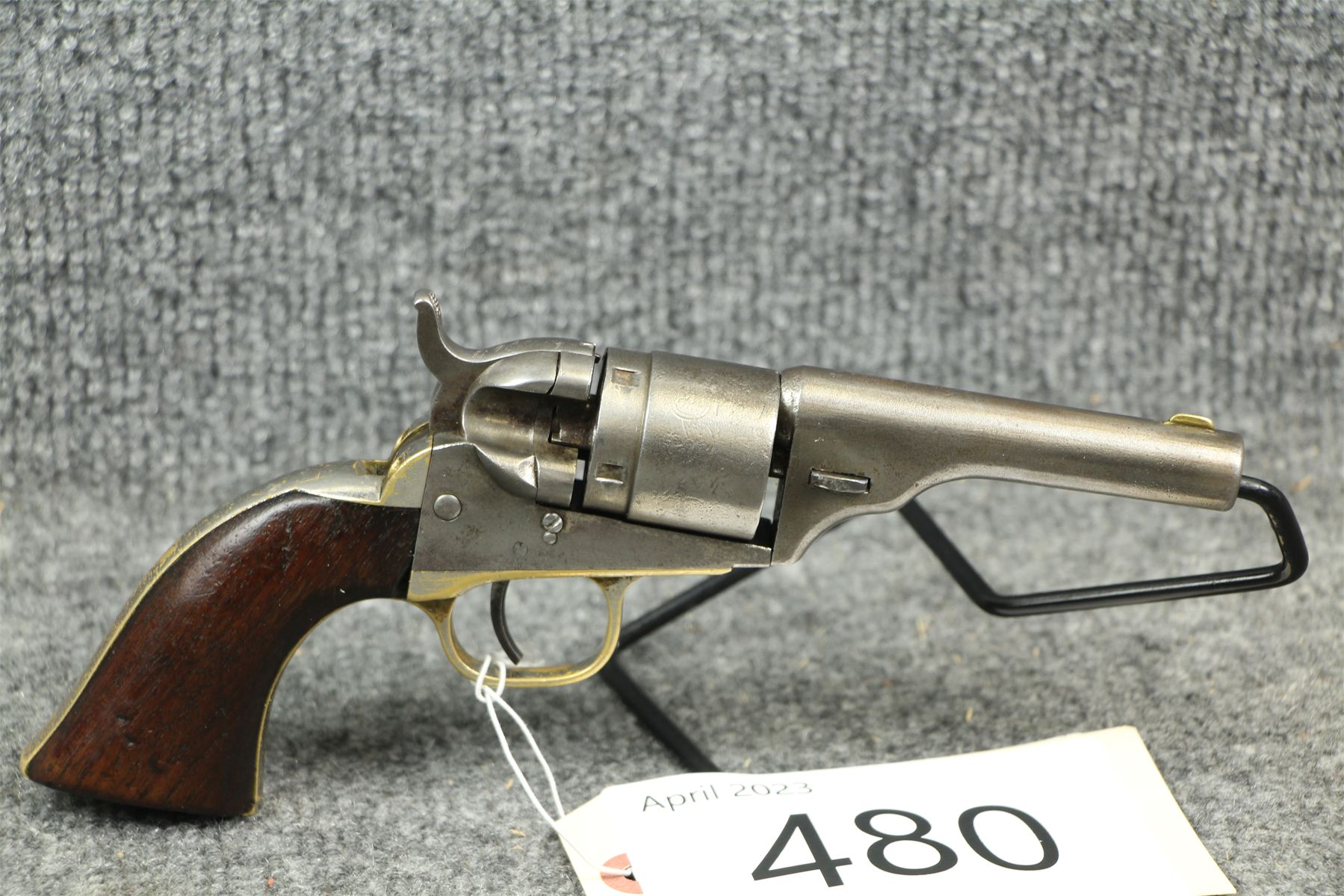 The action works flawlessly. The Colt Model 1862 Police Conversion was intended for security personnel and followed the line of other Colt products emerging during this time of history. As metallic-cased cartridges became more and more popular (as well as already available), some 70% of colt Model 1862 police revolvers were converted to fire the new ammunition. The 3.1/2” round cartridge barrel revolvers were easy to manufacture because there was no loading gate and no cartridge ejector system. Therefore, combined with the Colt name for quality, were well accepted.