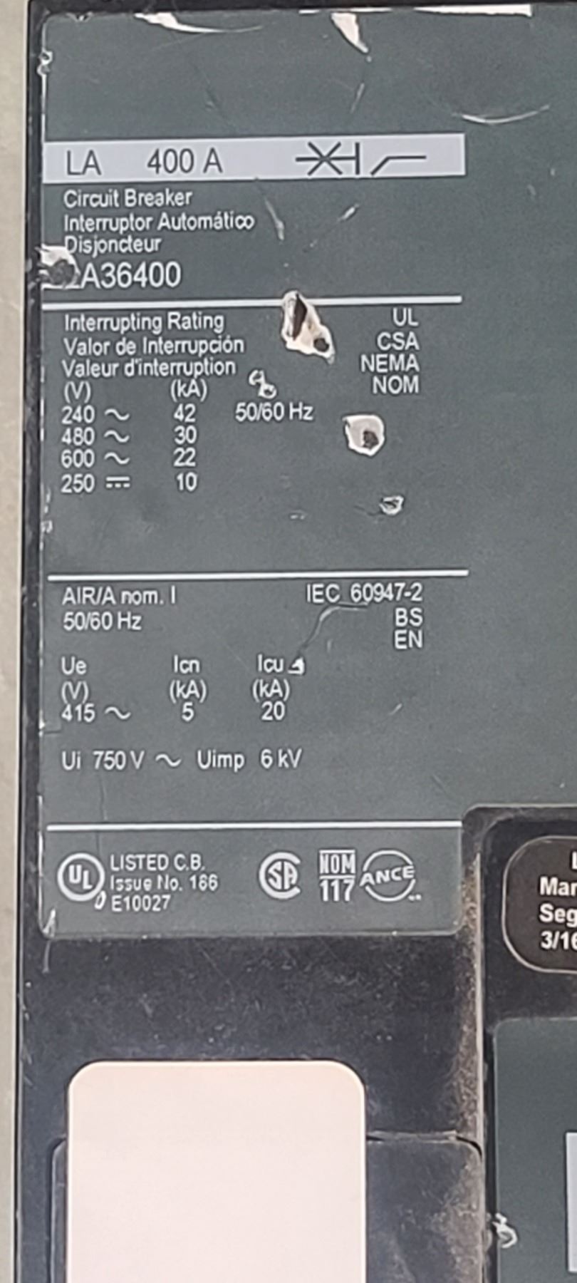 Lot 156 SQUARE D AL 400A 400A BREAKER