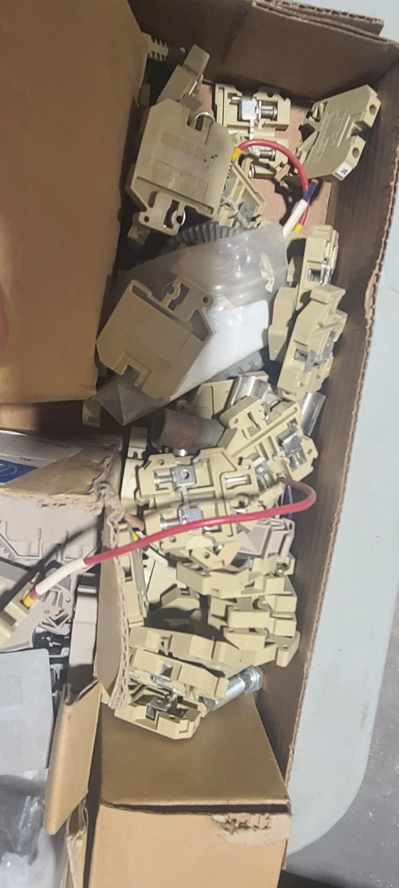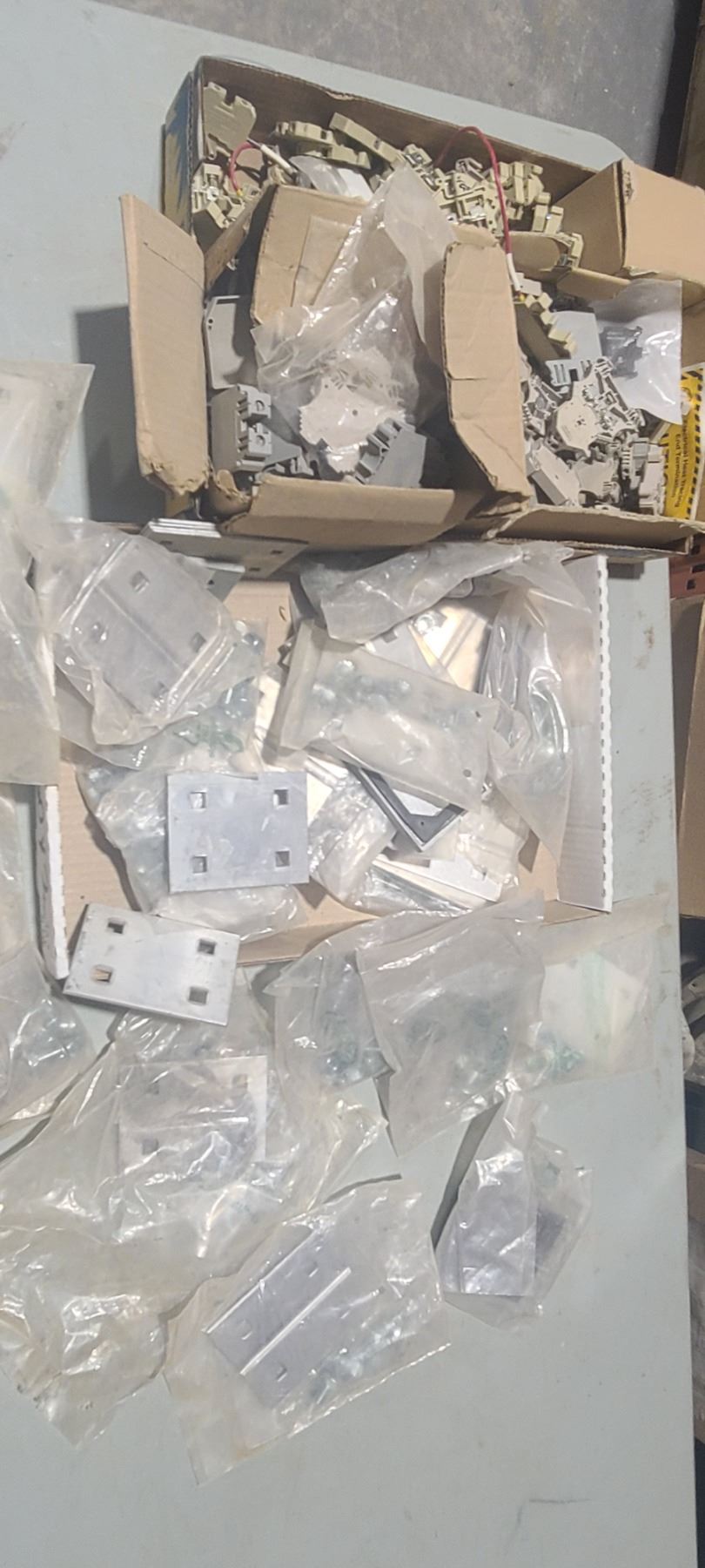ONE BOX OF ALUMINIUM PLATE AND ONE BOX OF ELECTRICAL CONNECTORS