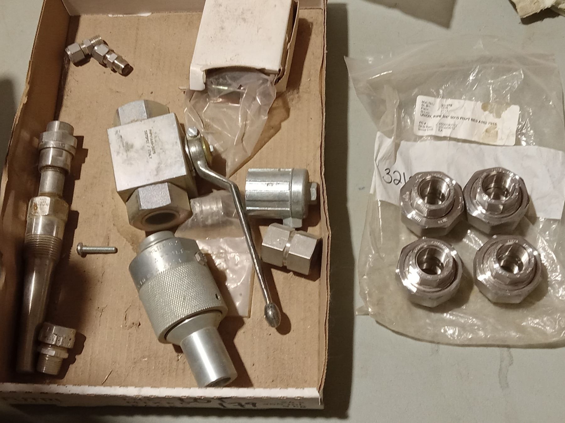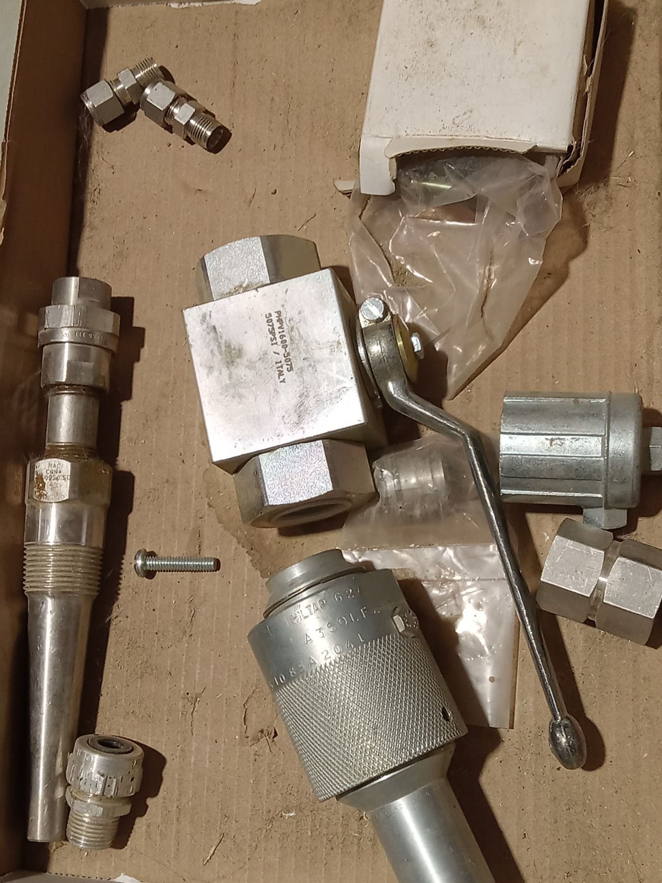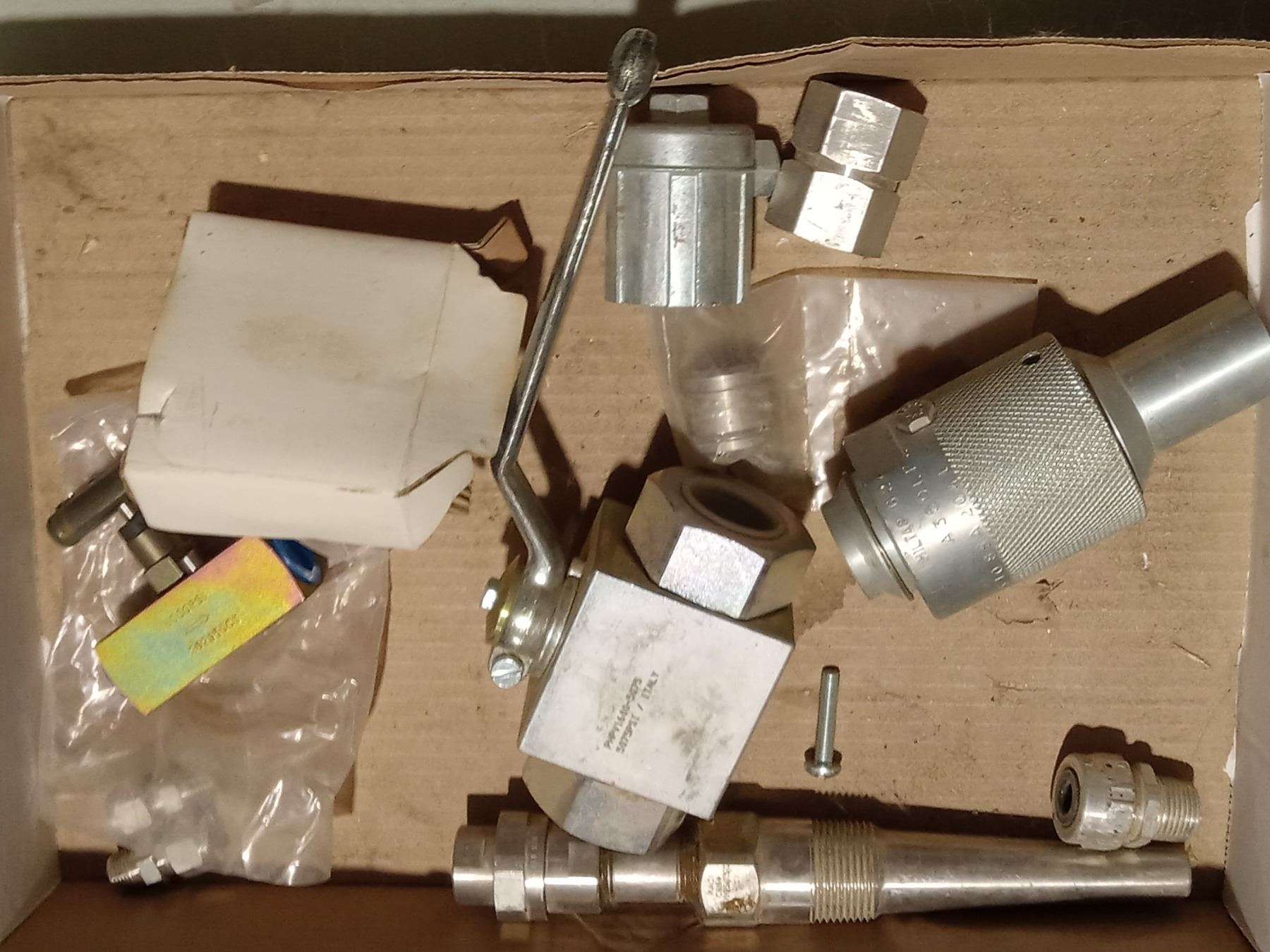 Lot 179 BOX WITH 3/4'' UNION 3,000 FNPT, 5075 PSI SHUT OFF VALVE AND MIC