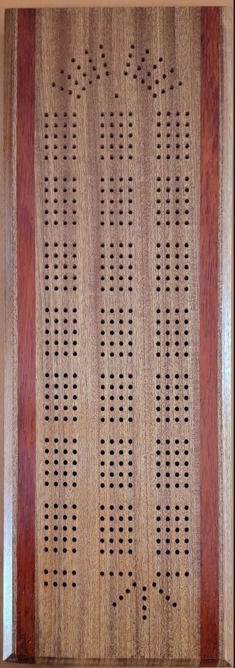 Handcrafted wood cribbage board from Tamara's Fine Designs.