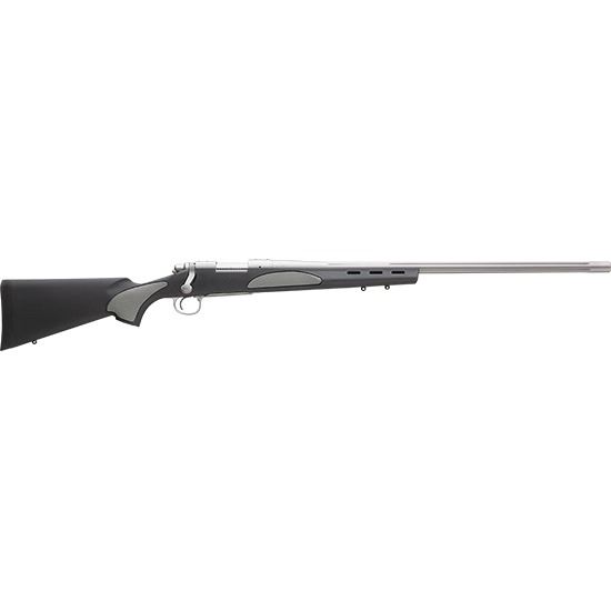 Built on the legendary Model 700 action, Remington® Varmint rifles are the among the most accurate factory-built models we produce. If you value tiny groups and the big-time weather resistance of stainless steel and synthetic stocks, our Model 700 Varmint Stainless Fluted (SF) is for you. Its 26" heavy-contour barrel is fluted for weight reduction while maintaining rigidity and rapid cooling. The concave dish crown protects the rifling lands and promotes tack-driving bullet flight. The rugged synthetic stock has over-molded panels for a sure grip and a vented beavertail fore-end that keeps air flowing around the barrel. There are dual front swivel studs for sling and bi-pod.