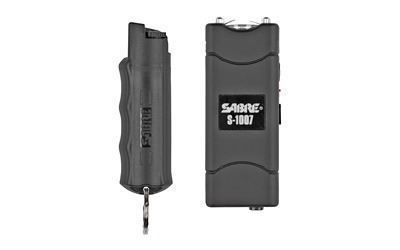 Sabre, Stun Gun and Pepper Spray Package, Black Color, Stun Gun w/ Built-In 120 Lumen Flashlight, Twist Top Pepper Spray