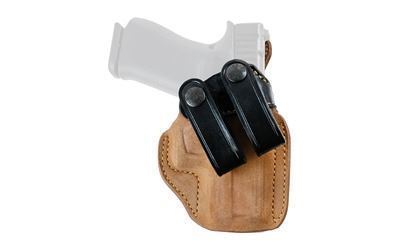After decades of production, the Royal Guard has been improved based on Galco's experience and market feedback over many years. Constructed of premium horsehide, the Royal Guard 2.0 has the rough side of the leather out for greater stability in the pants, while the smooth side of the leather lies against the handgun for a slicker draw feel. The butt-forward cant increases concealability when worn behind the strong hip, while the addition of a raised sweat guard protects both the handgun and the gun carrier. The new black-colored metal-reinforced mouth allows easy one-handed return to the holster. The Royal Guard 2.0 is supplied with removable black belt loops fitting belts up to 1 3/4", with optional 1 1/4" belt loops available for wear with narrower dress belts. All these features combine to make a truly professional-grade IWB holster. The improved Royal Guard 2.0 is offered for right hand draw.