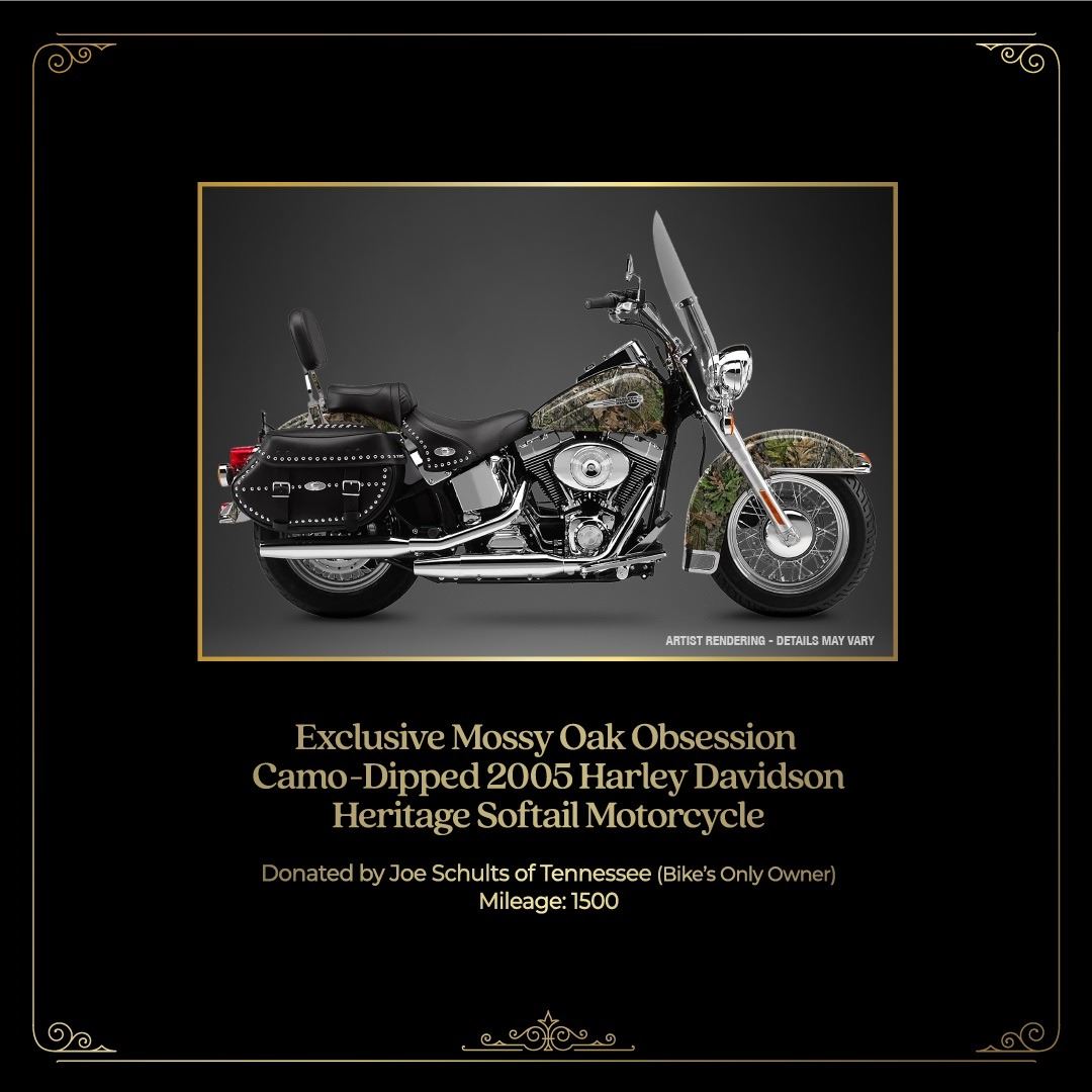 Lot 7 2005 Harley Davidson Heritage Softail Motorcycle Camo-dipped in Mossy Oak Obsession