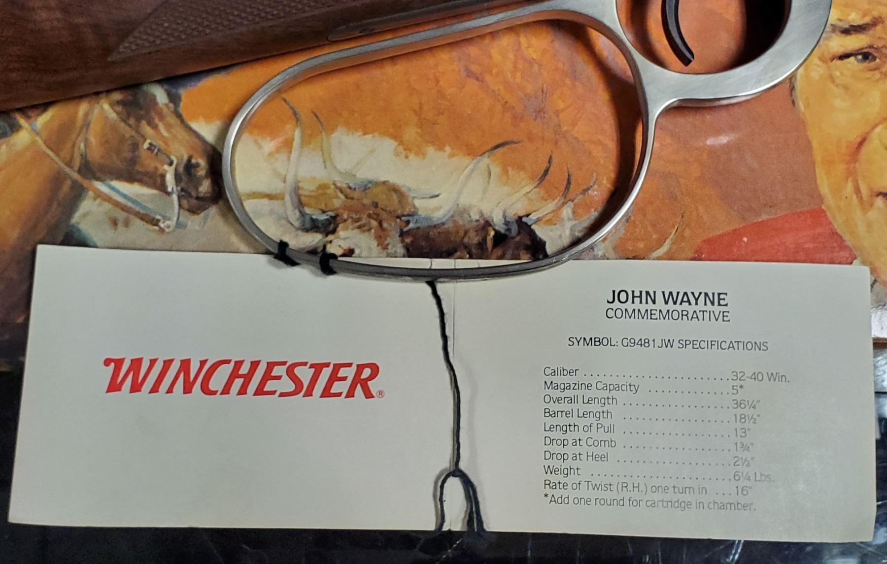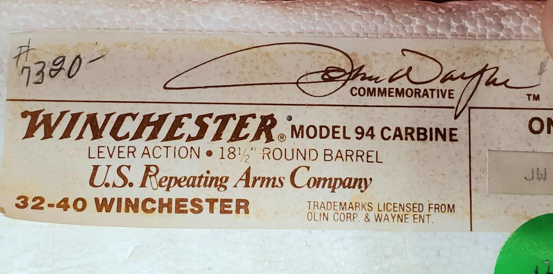 Lot 52 John Wayne Commemorative Lever Action Winchester Model 94 Carbine 32-40 Winchester