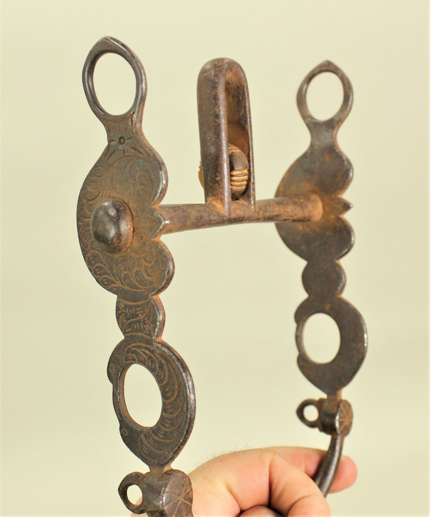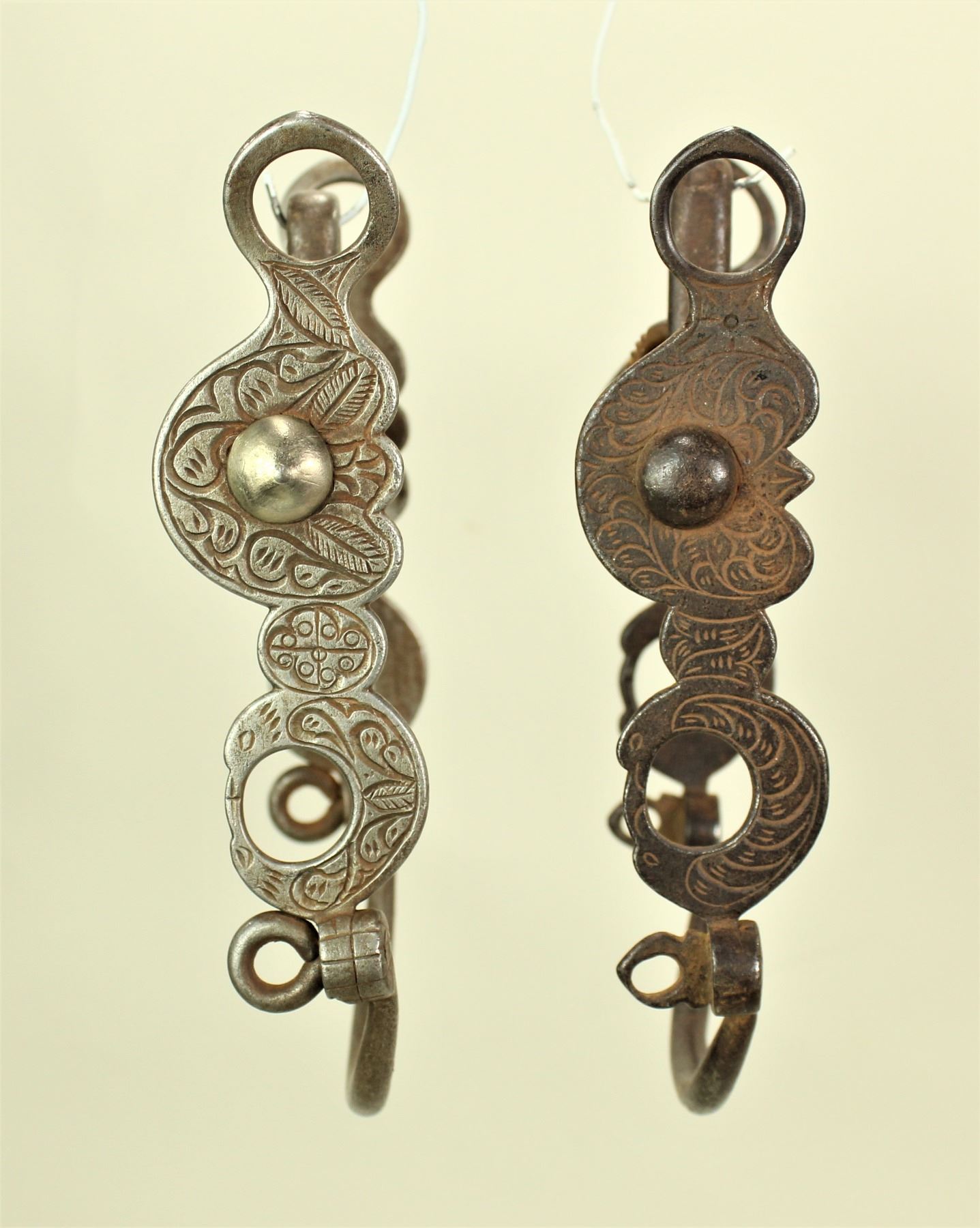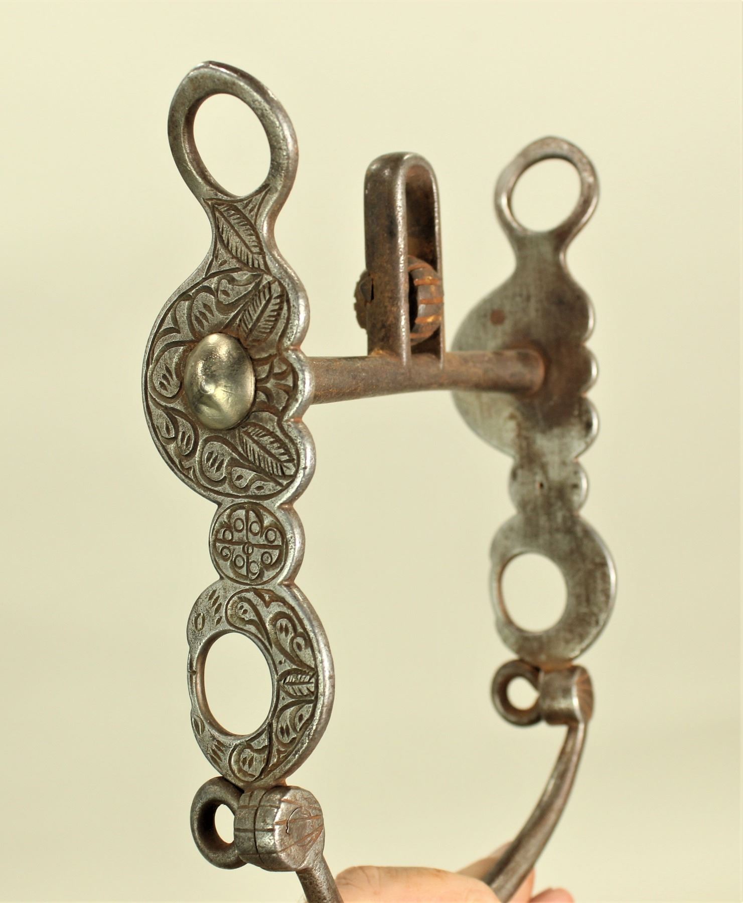 A lot of two early California style iron halfbreed bits, both with fantastic deep engraving and in the classic style of Larios.
