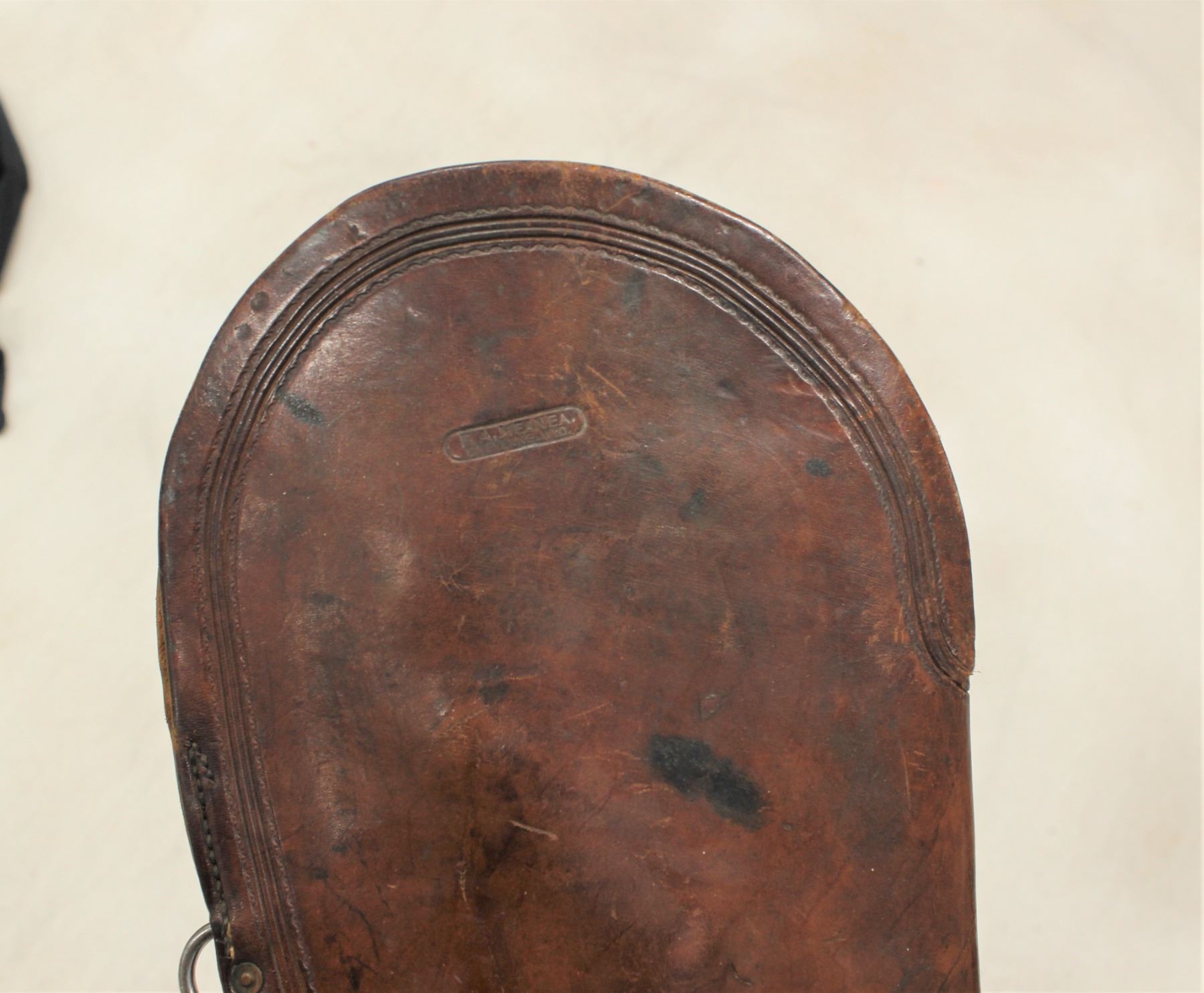 Showing beautiful rich color and patina, this scabbard fits a lever action Winchester nicely, and has strong F.A. Meanea stamp.