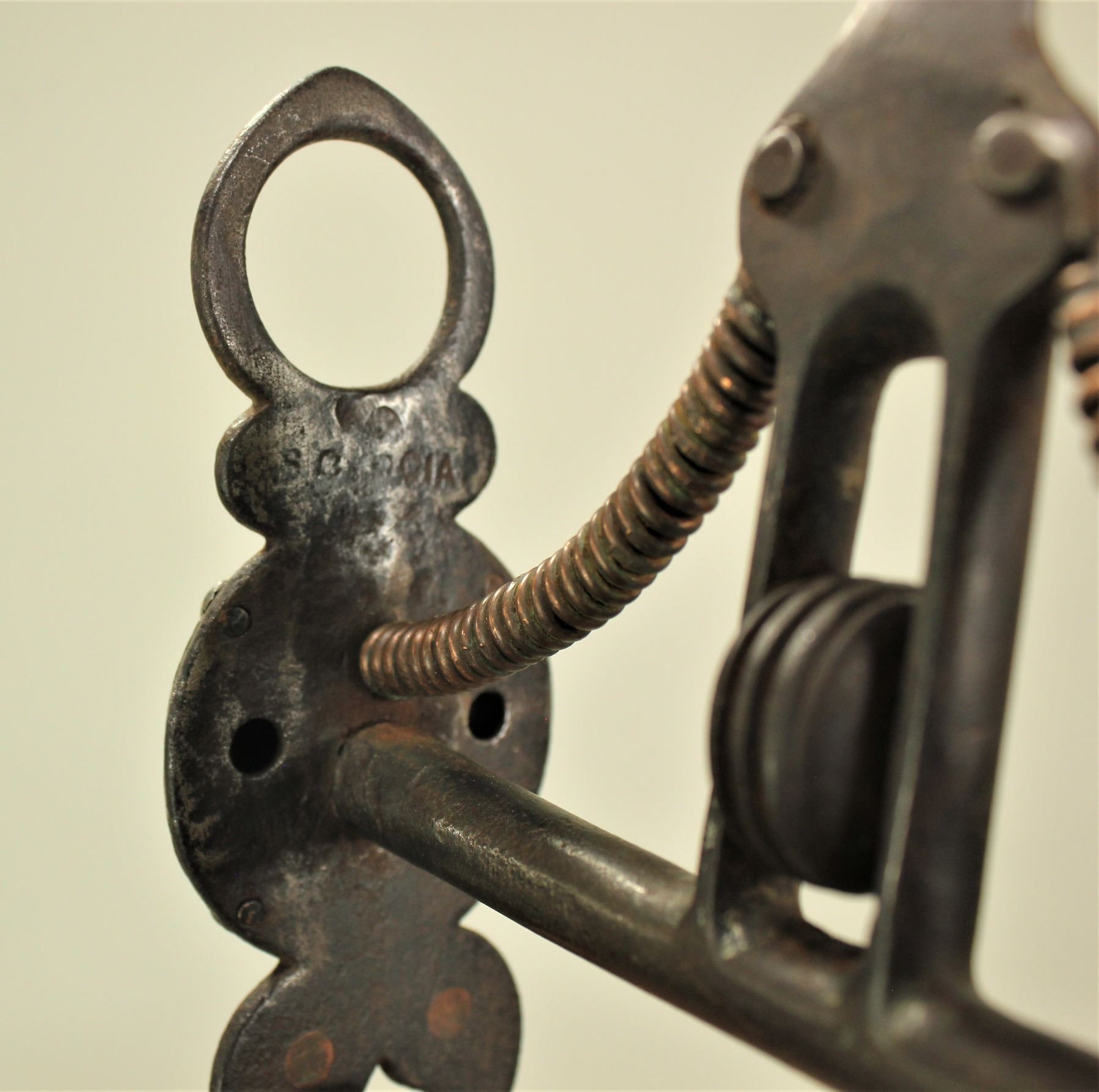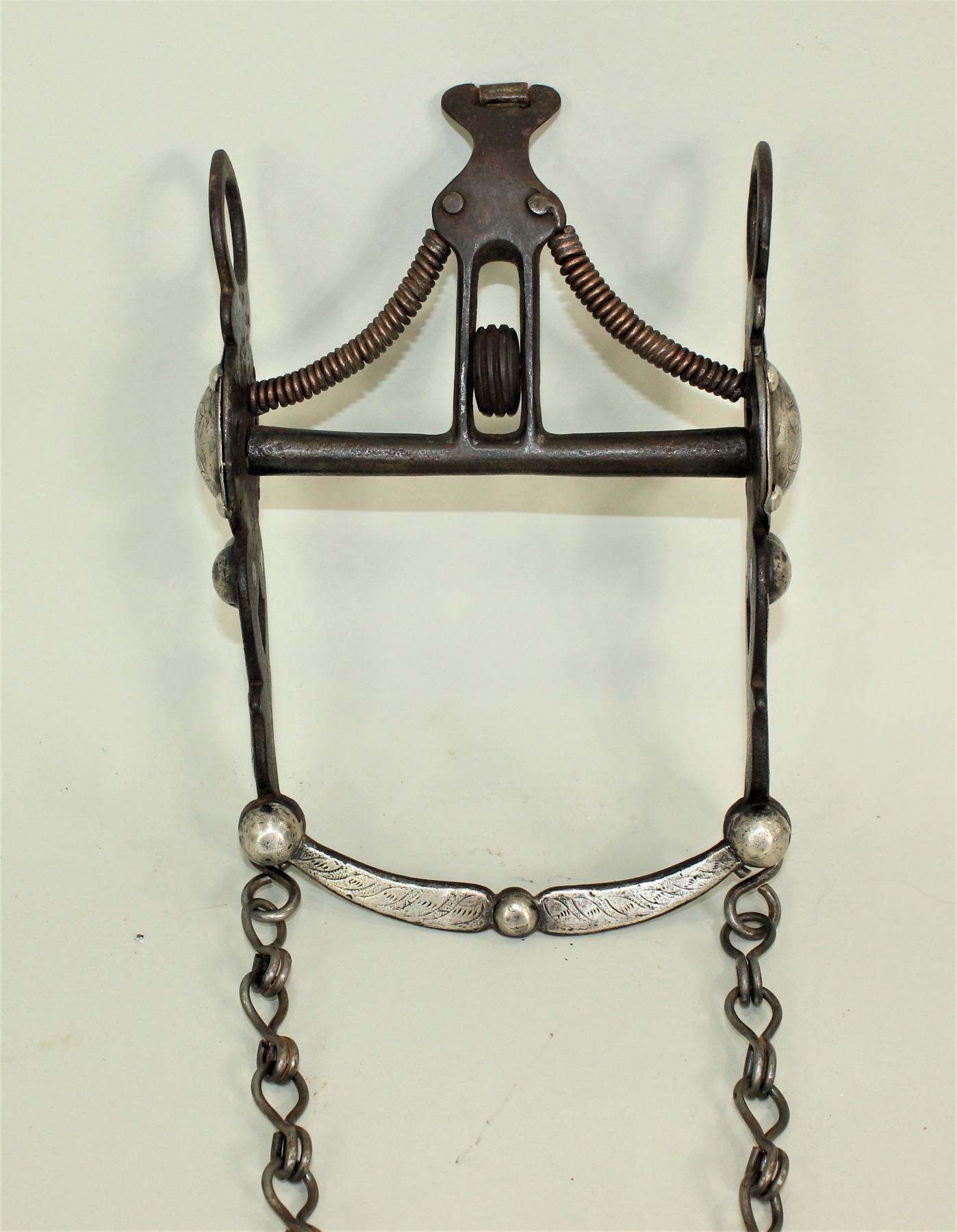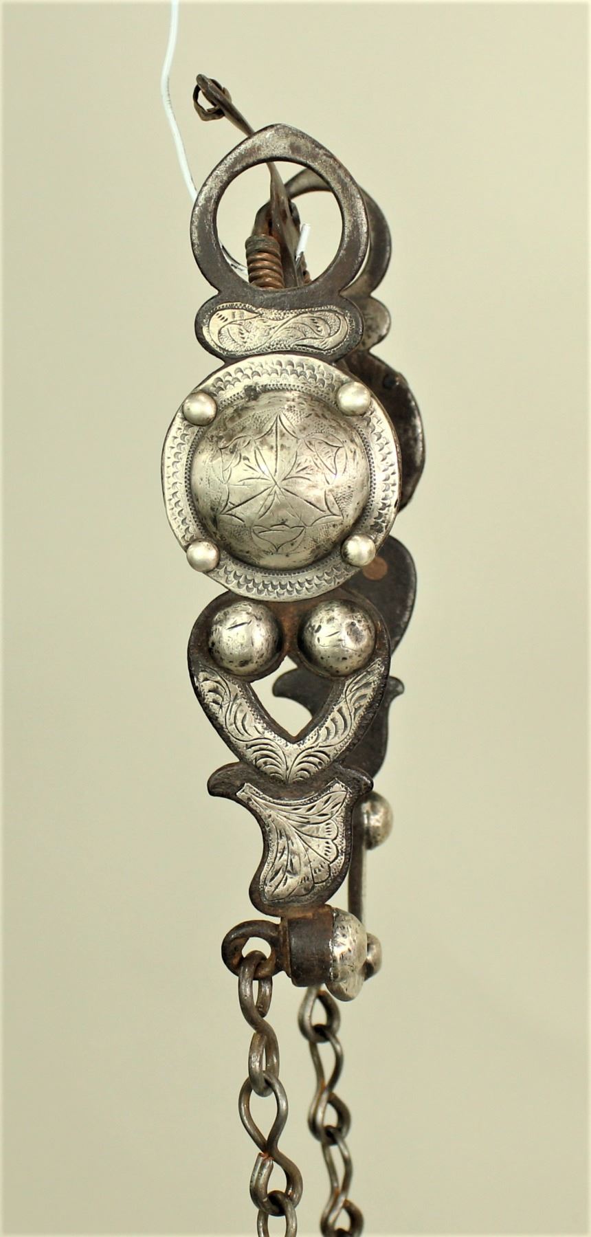 A very uncommon and early, well marked spade bit with cut-out heart designed cheekpiece, with great silver inlaid style and condition.
