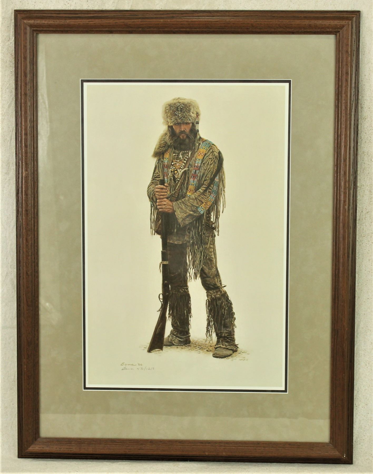 Titled "Mountain Man", a limited print, signed and numbered in lower left. Professionally framed with image measuring 13"x 20".