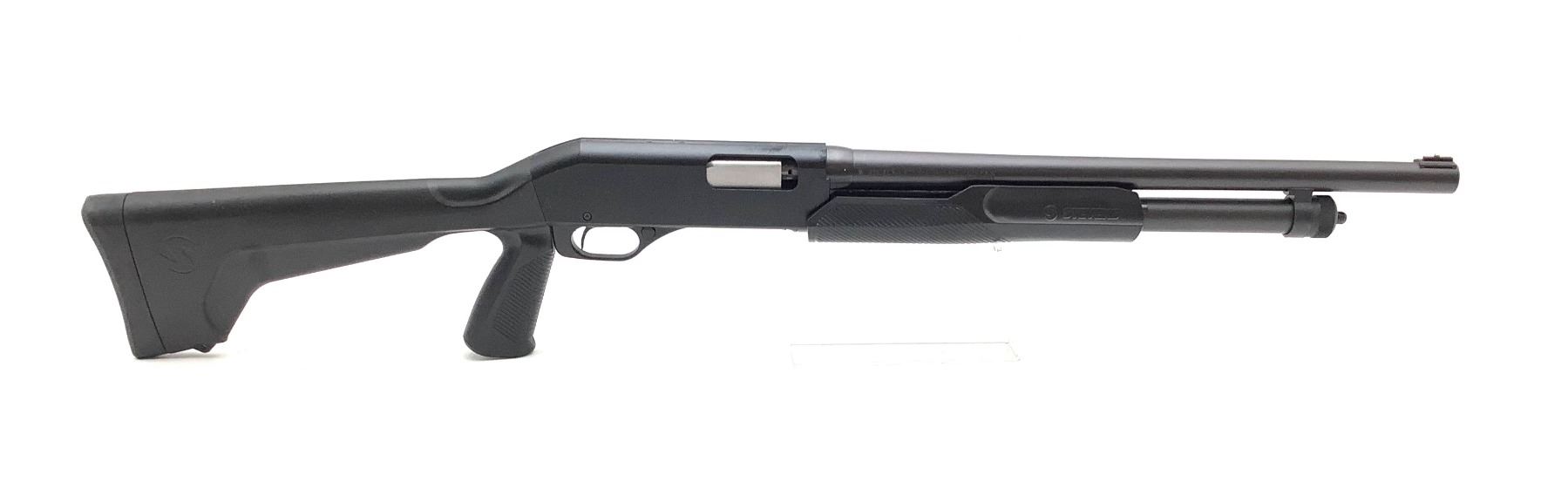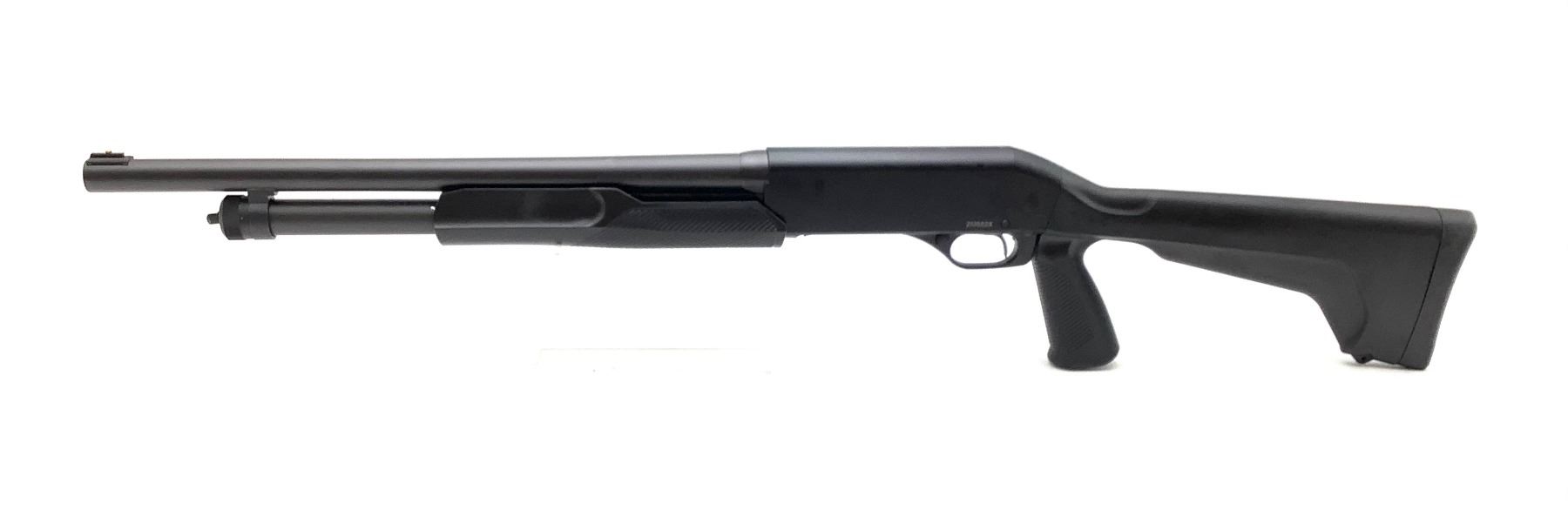 Stevens 320 Pump Action Shotgun 12Ga 3" Chamber 18.5" Barrel Black Synthetic Stock, New. Fixed choke, bead sight. This is a non-restricted firearm.