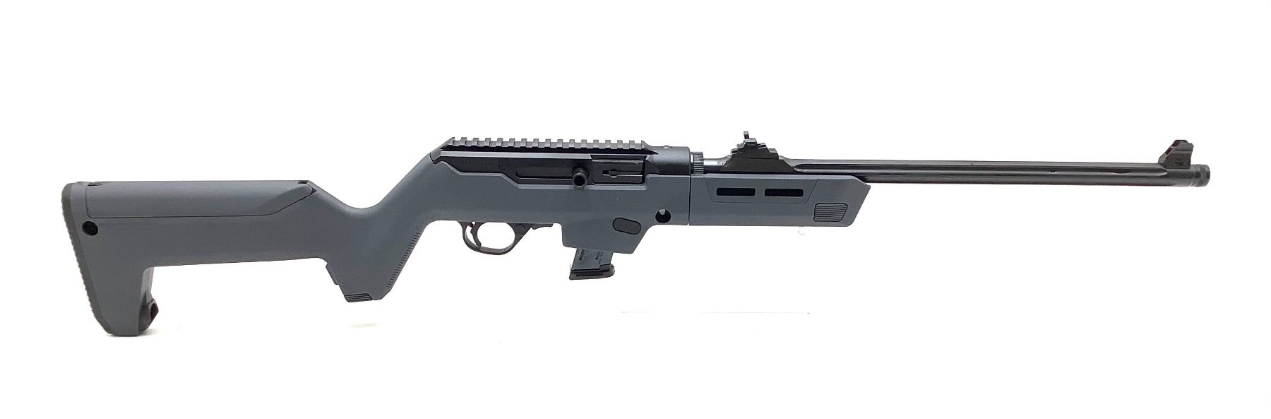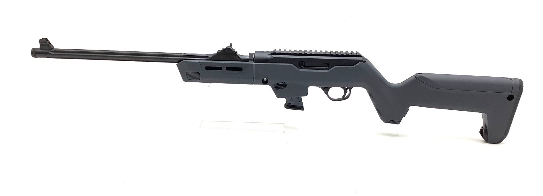 Ruger Semi Auto PC Carbine 9mm 18.62" Barrel Stealth Gray Magpul PC Backpacker Stock, New. Includes one detachable magazine and Glock magwell adapter. Factory open sights. This is a non-restricted firearm.
