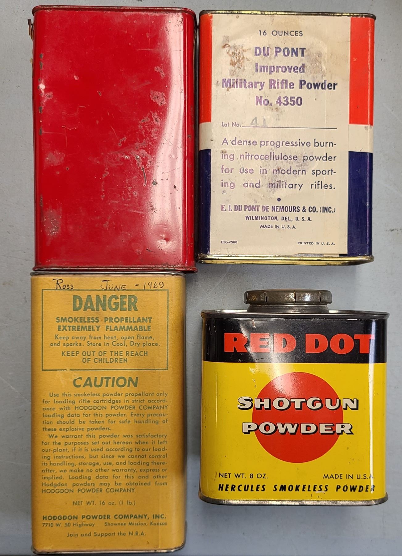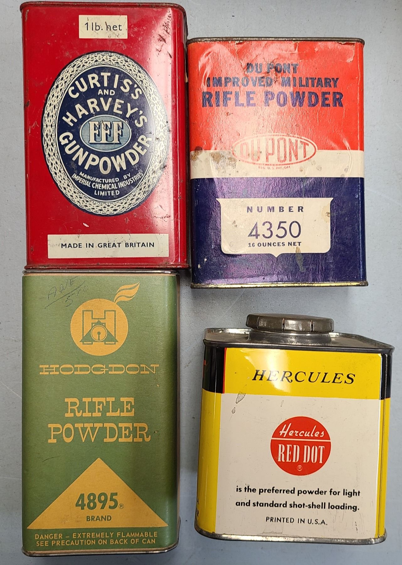 Vintage Powder Tin Lot - Hodgon, Curtis, Hercules & DuPont - 4 Collector Tin