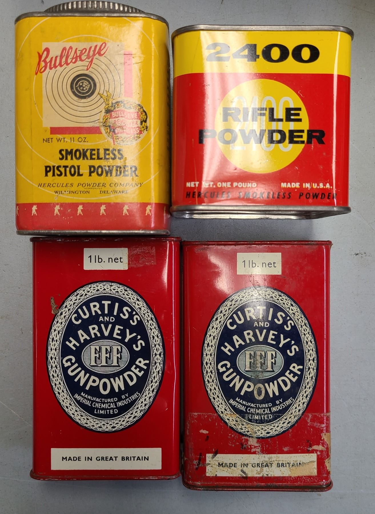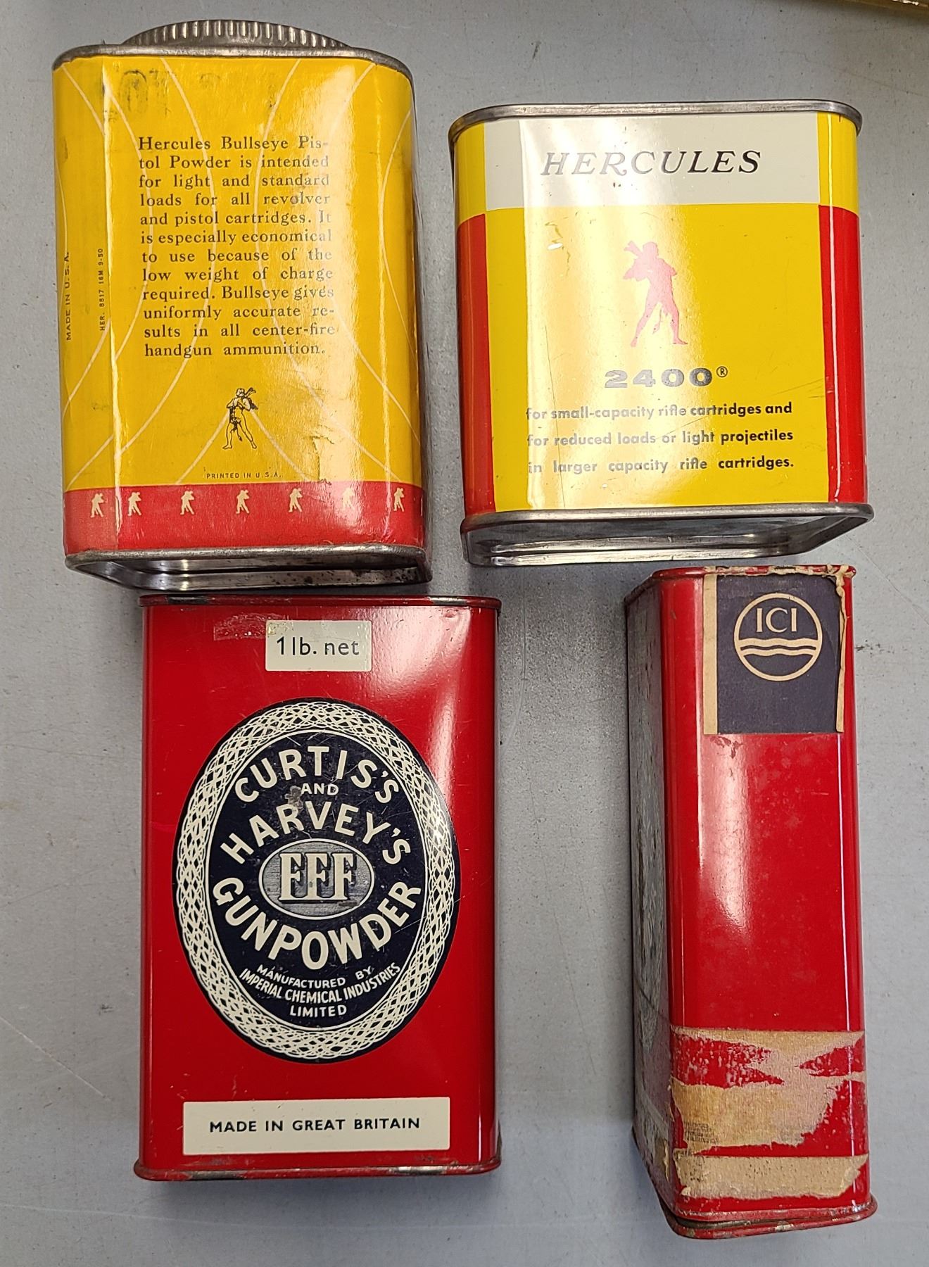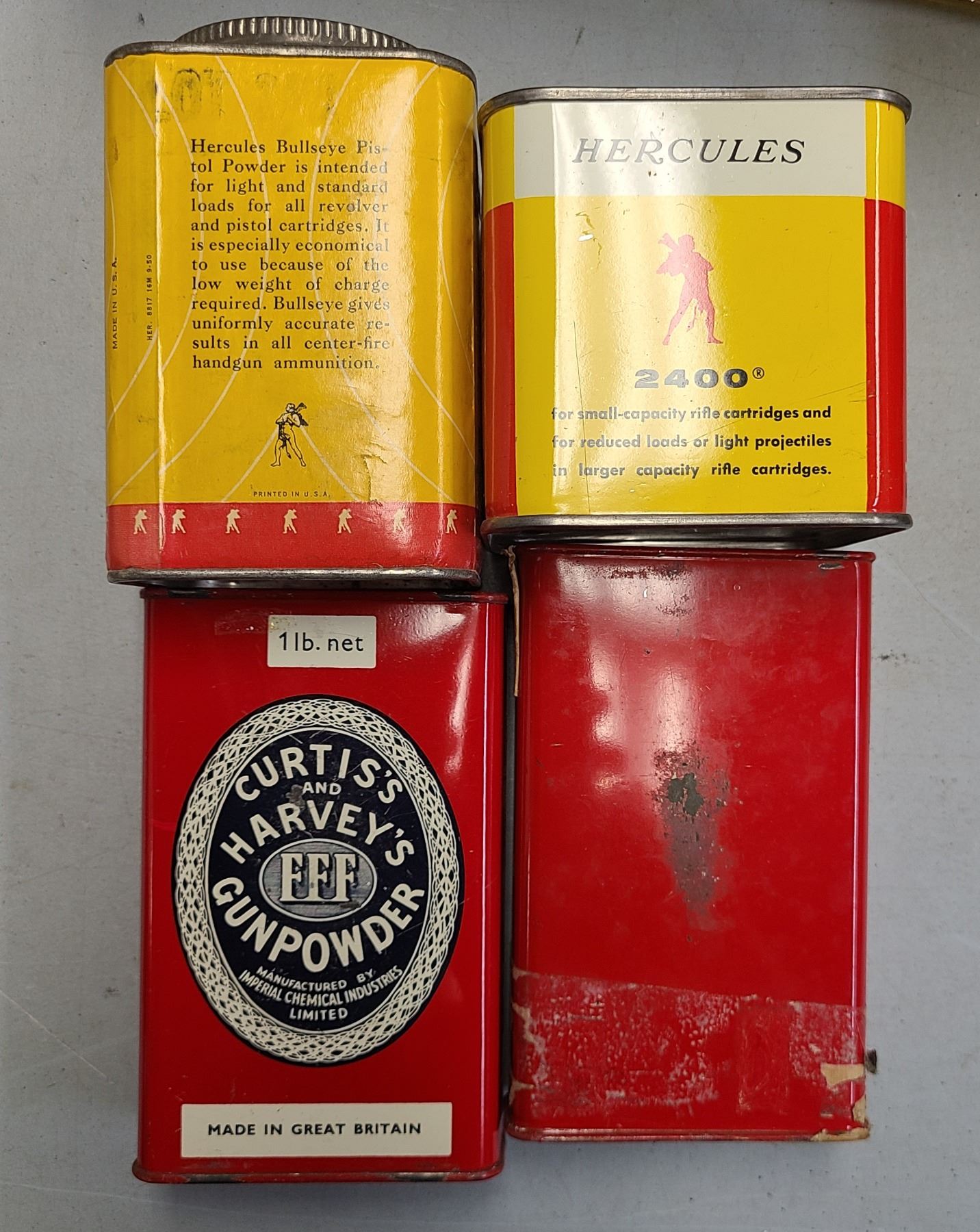 Lot 256 Vintage Powder Tin Lot - Curtis, Bullseye & 2400 Hercules - 4 Collector Tin