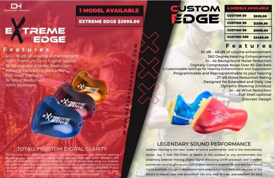 Defense Hearing is the clear leader in sound performance. and in this revolutionary device. You´ll hear the finest of details in the outdoor or any environment. Our proprietary Defense Hearing Digital Signal Processing (DSP) processes over a million sounds per second, giving you 100% Digital sound re-creation for the very best sound clarity available. You get a sensational extra edge in the field that's lets you hear all the details in nature, your rival sportsmen can only wish to hear, also excellent for daily.