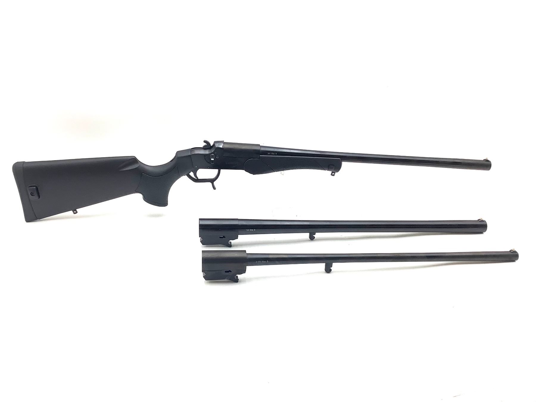 Canuck Solo Single Shot Shotgun 12Ga/20Ga/410Ga Combo 20" Barrels, New. Includes three separate barrels and interchangeable chokes. This is a non-restricted firearm.