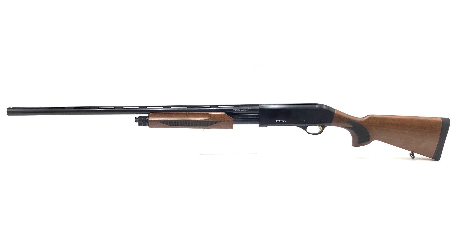 ATA Etro Pump Action 20Ga Shotgun 3" Chamber 28" VR Barrel Wood Stock, New. Bead sight, vent rib. Comes with interchangeable chokes. This is a non-restricted firearm.