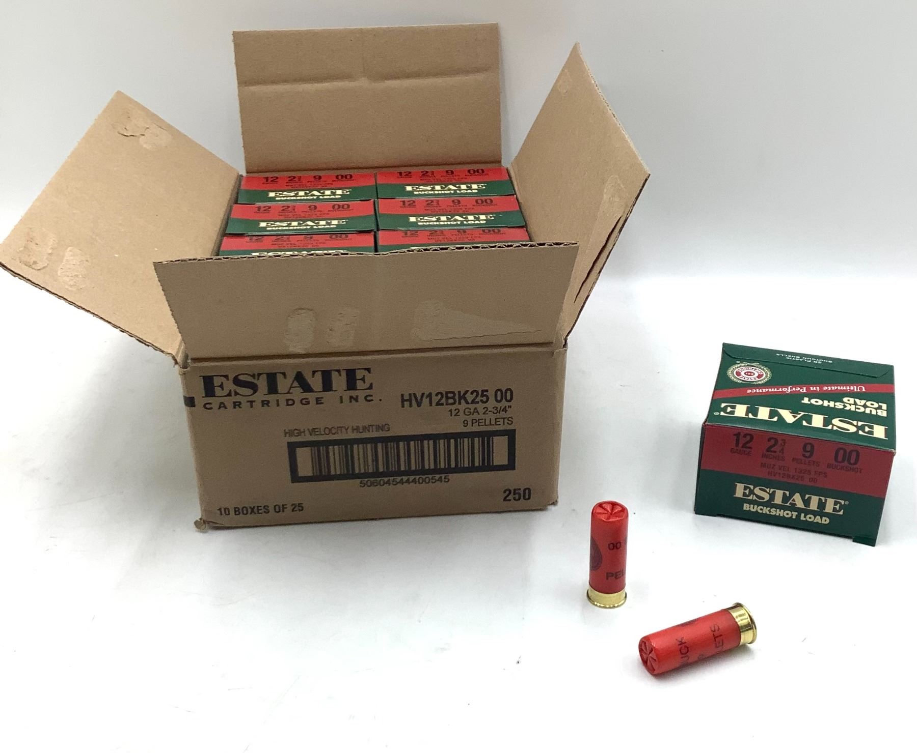 Estate HV Hunting 12 Ga 2 3/4" 00 Buck Ammunition, 250 Round Case