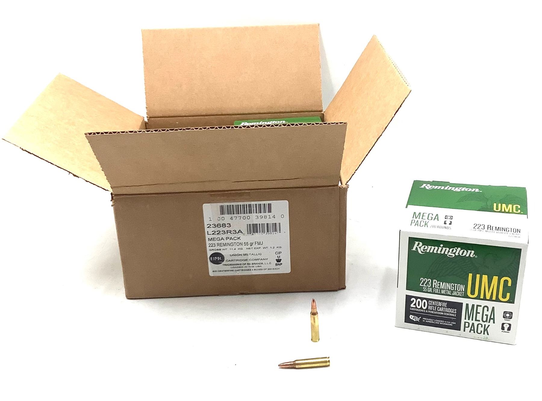 Remington UMC 223 Rem in Mega Packs 55 Grain FMJ Ammunition, 800 Round Case