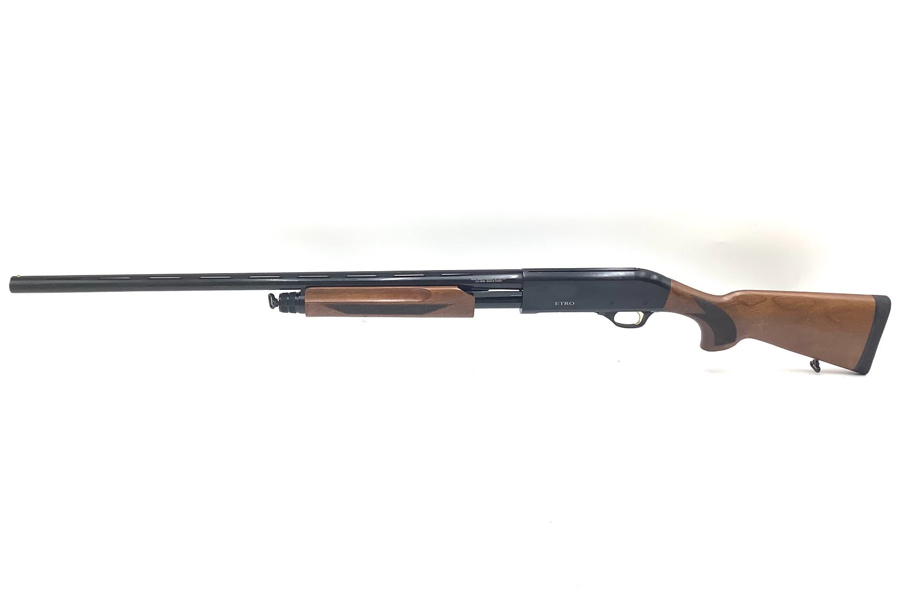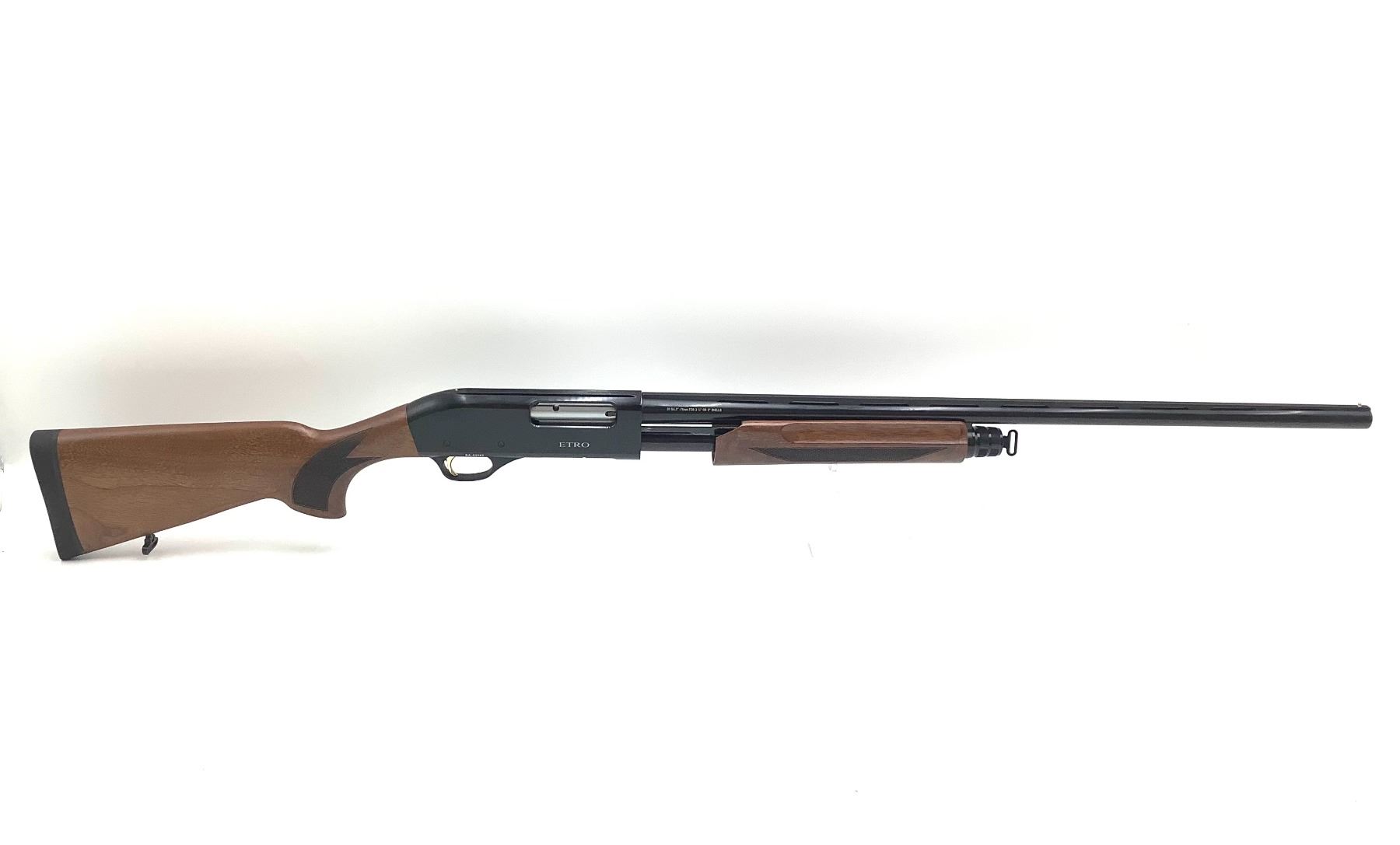 ATA Etro Pump Action 20Ga Shotgun 3" Chamber 28" VR Barrel Wood Stock, New. Bead sight, vent rib. Comes with interchangeable chokes. This is a non-restricted firearm.