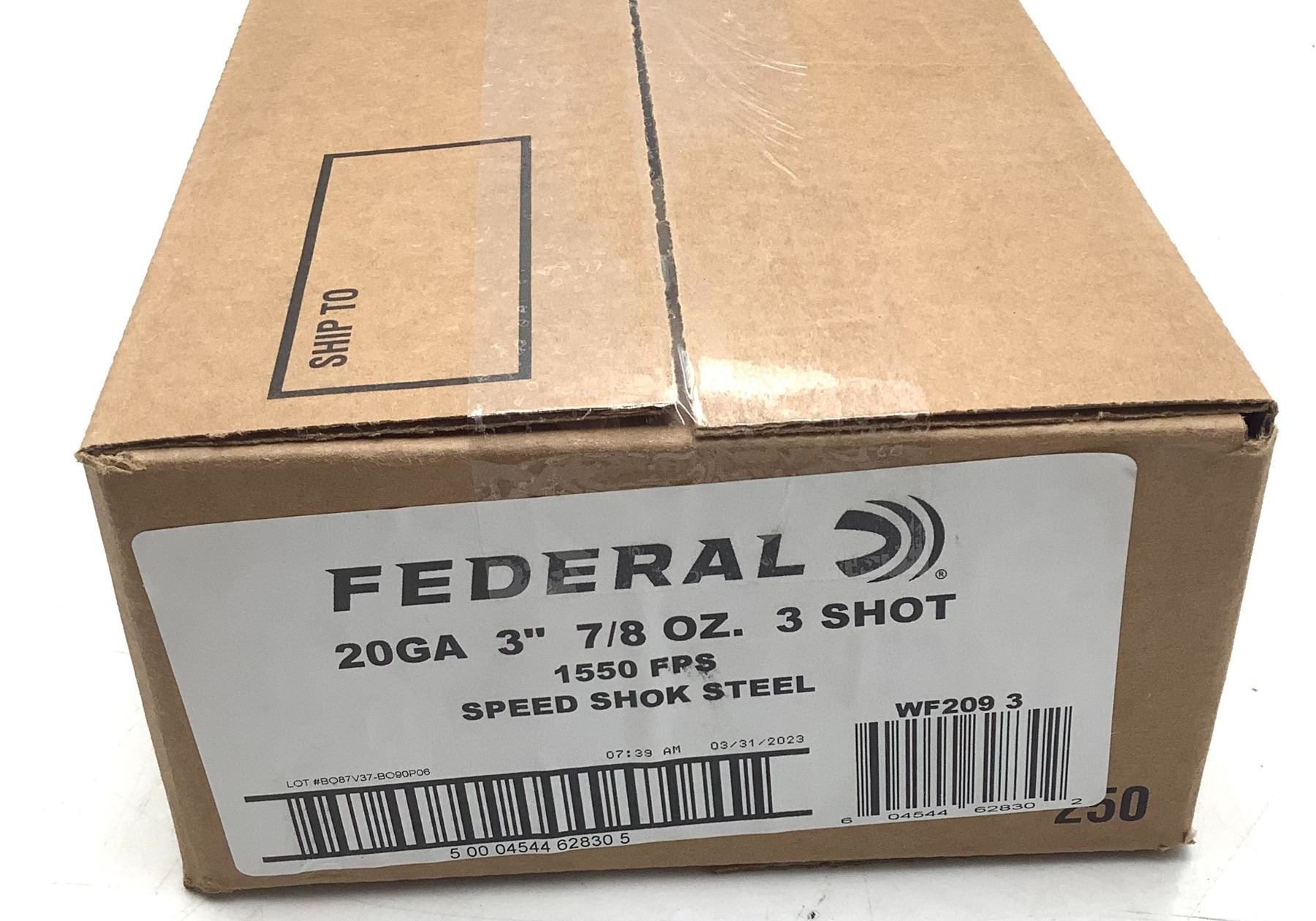 Lot 1731 Federal Speed Shok 20 Ga 3" #3 Ammunition, 250 Round Case