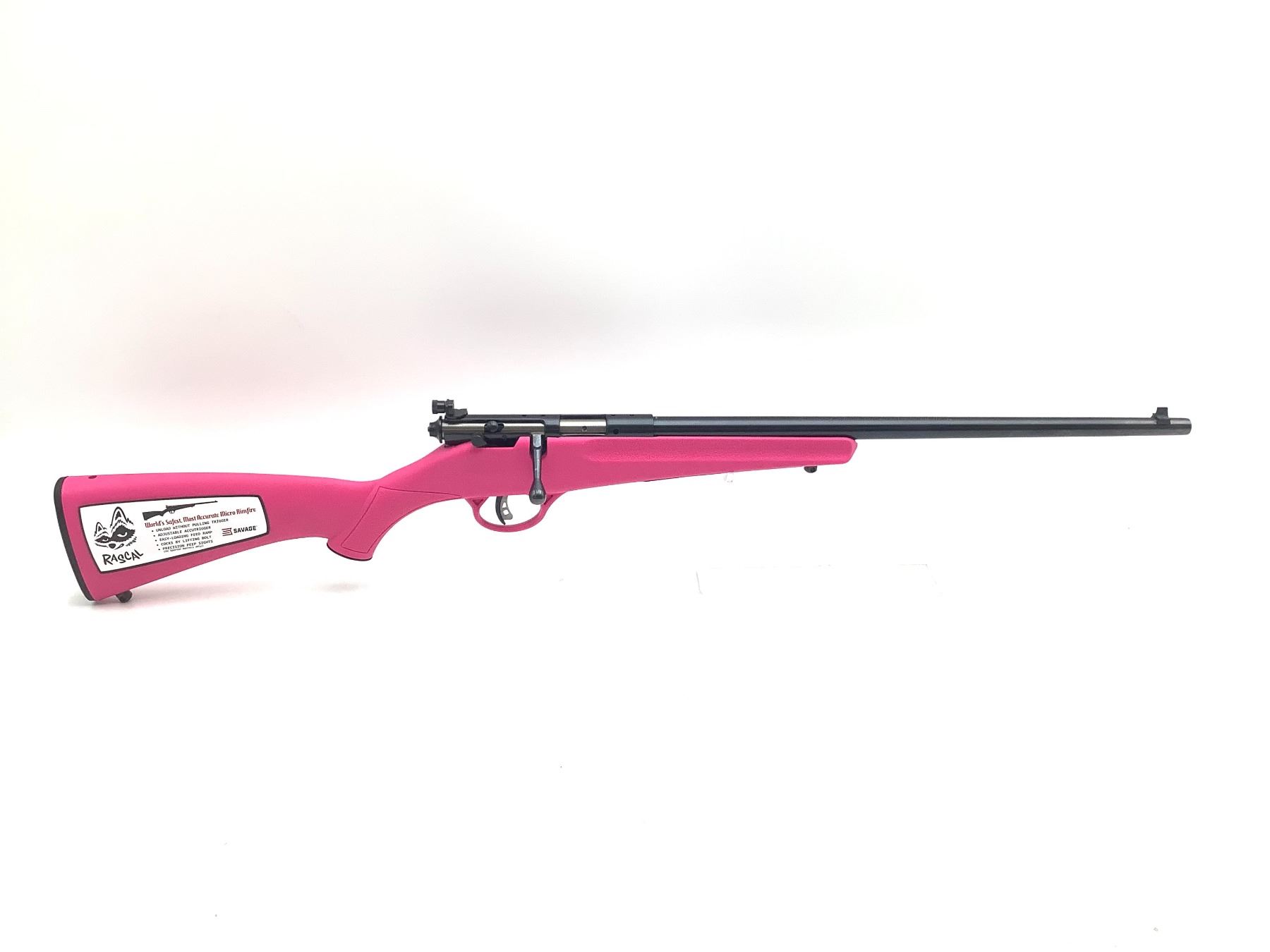 Savage Youth Rascal Single Shot Bolt Action Rifle 22LR Pink, New. Adjustable trigger, manual safety. Peep sight, receiver drilled and tapped. This is a non-restricted firearm.