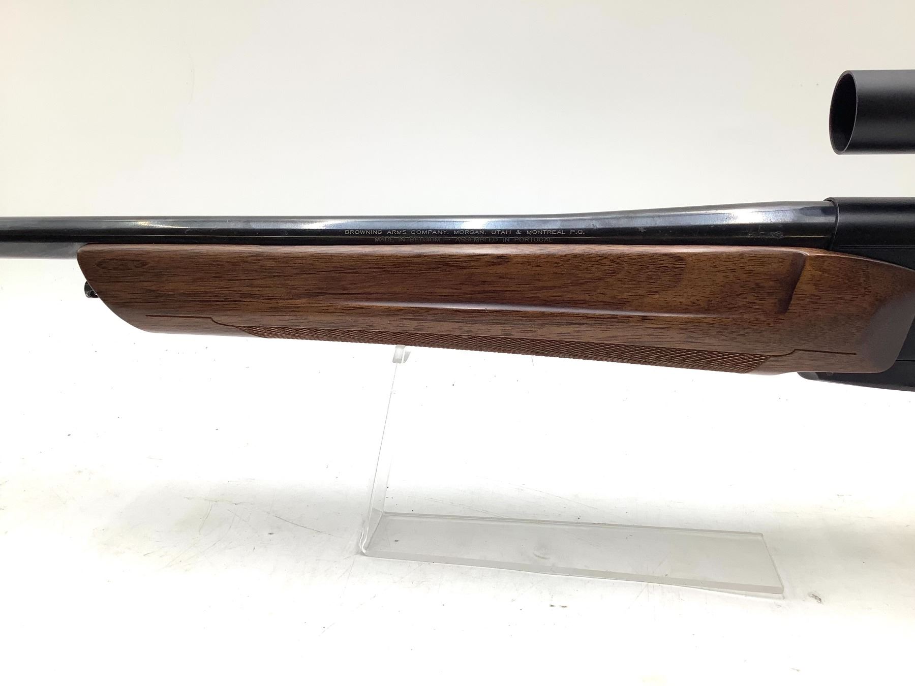 Browning ShortTrac Semi Auto Rifle 308 Win 22" Barrel Wood Stock With Bushnell Trophy Red Dot. Receiver drilled and tapped with bases installed. Hinged floor plate with removable magazine. This is a non-restricted firearm.