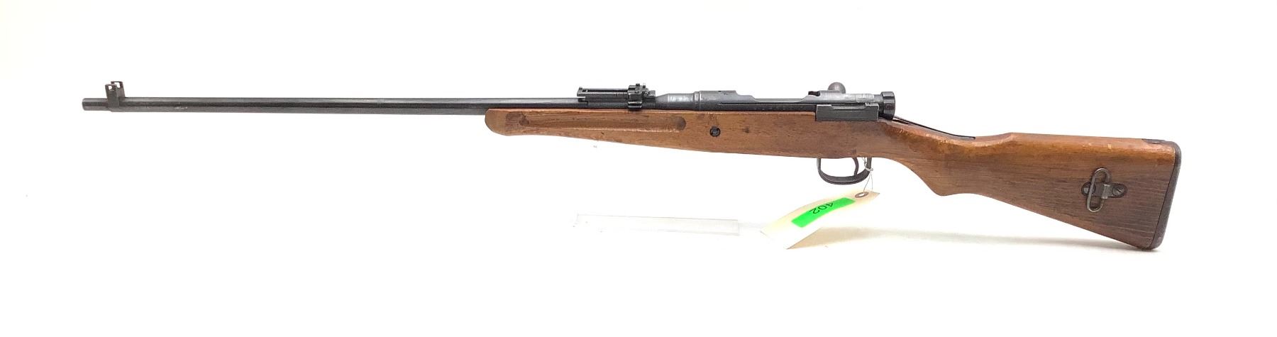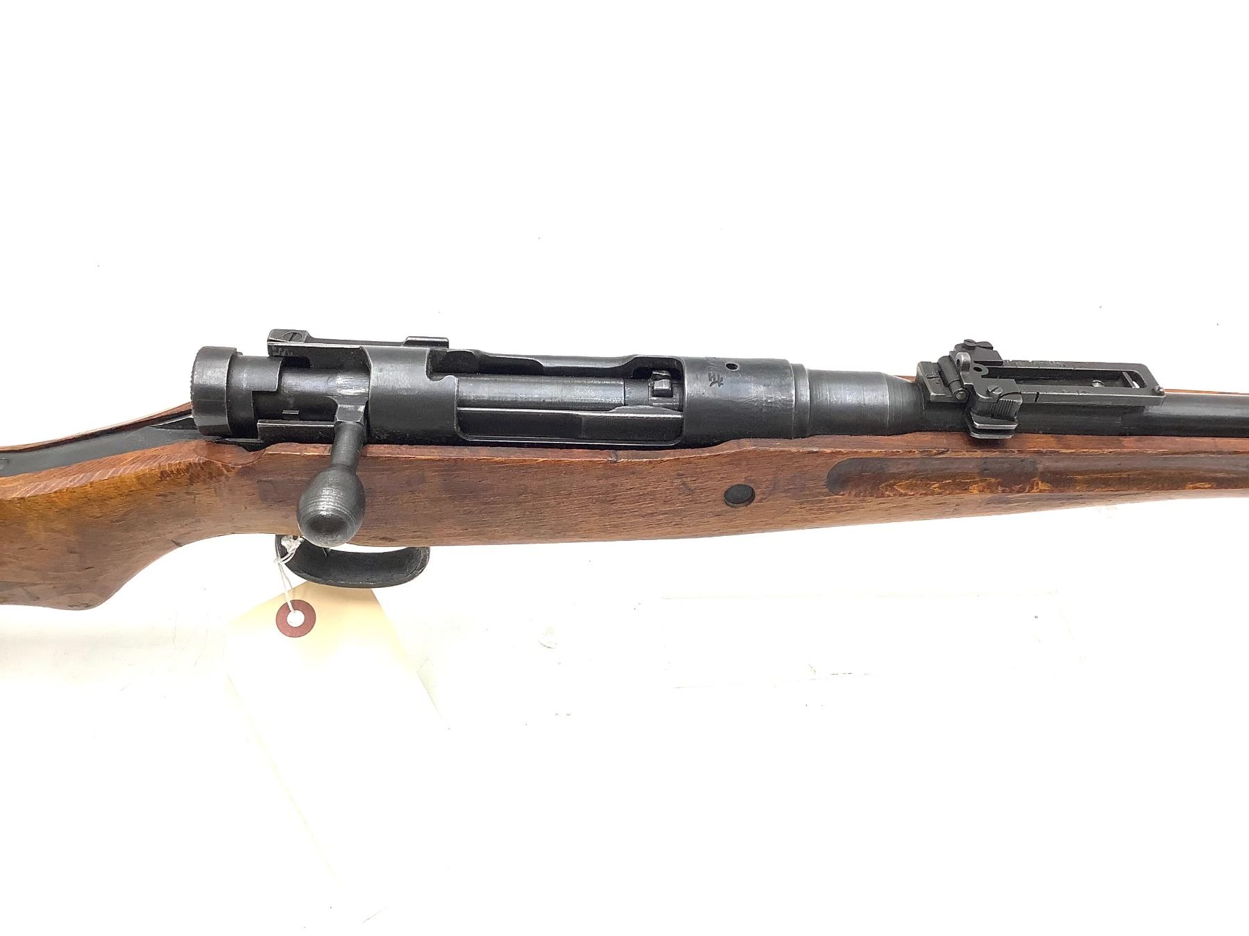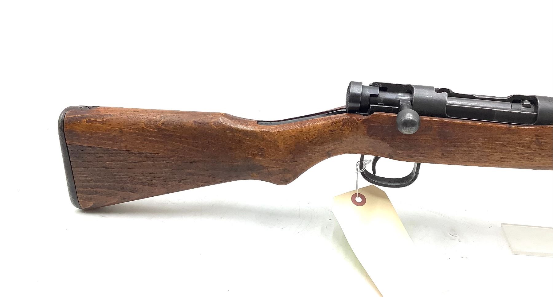 Sporterized Arisaka Bolt Action Rifle 7.7 Japanese 25.5" Barrel Wood Stock. Metal butt plate, open sights. This is a non-restricted firearm.