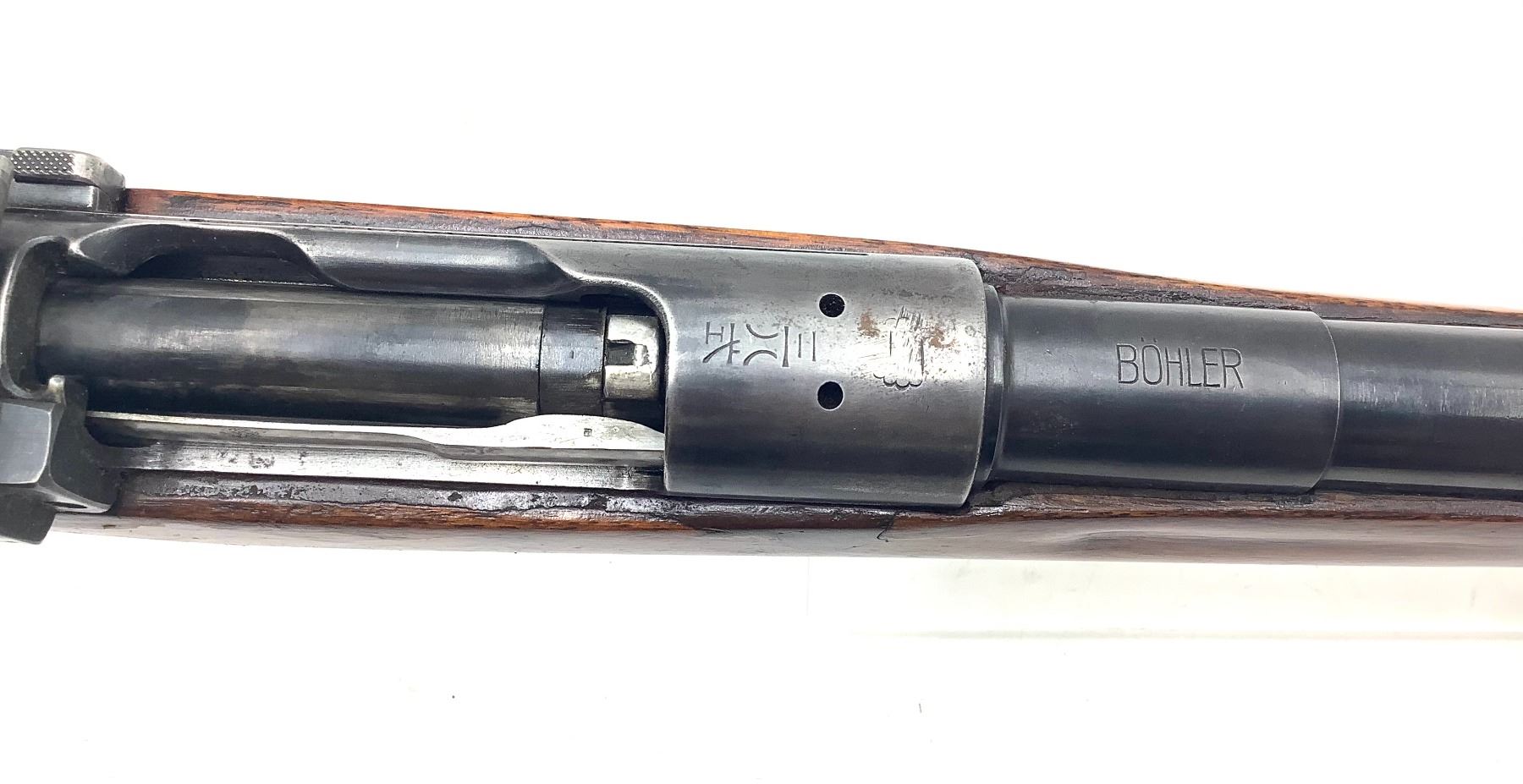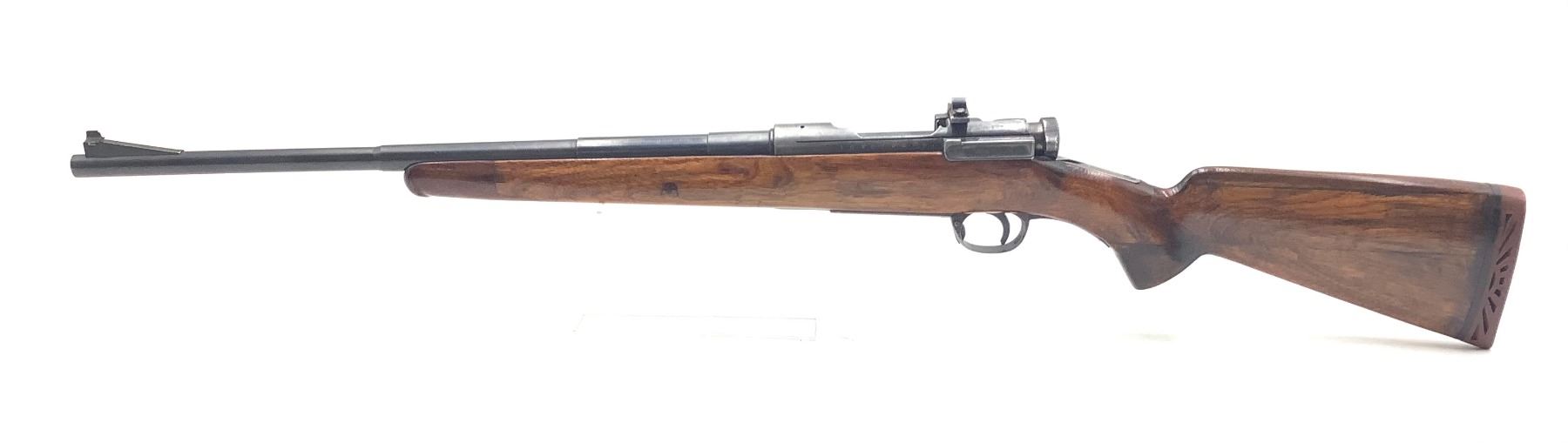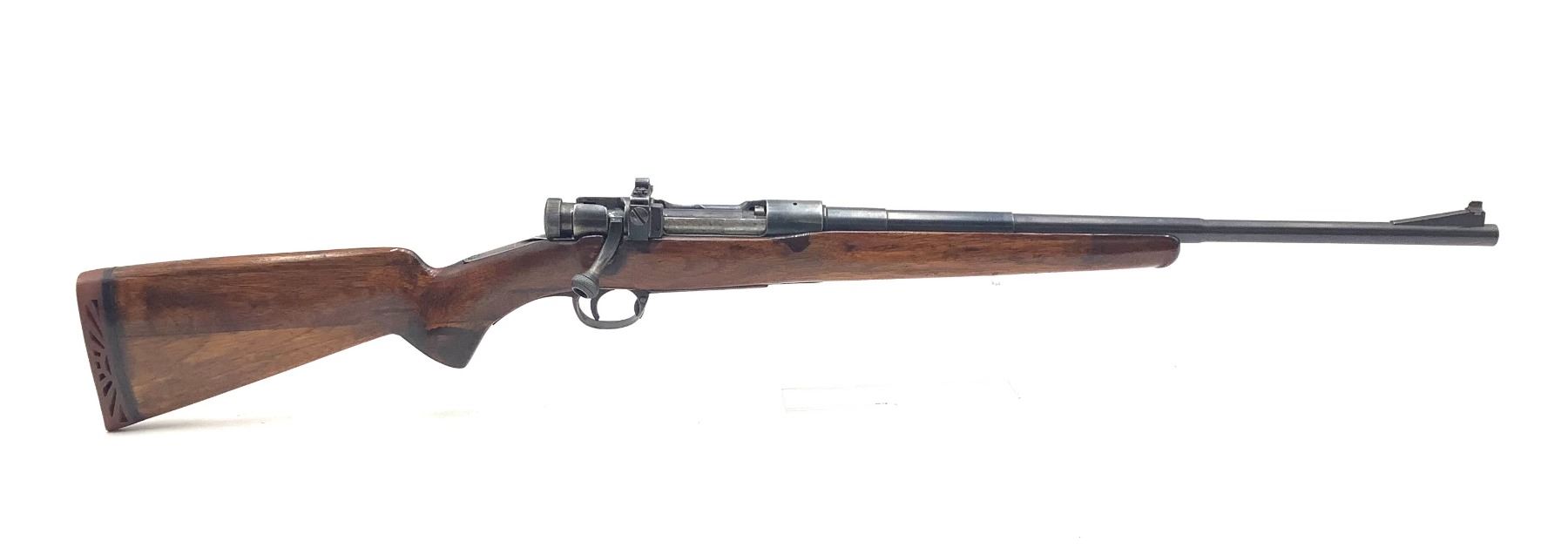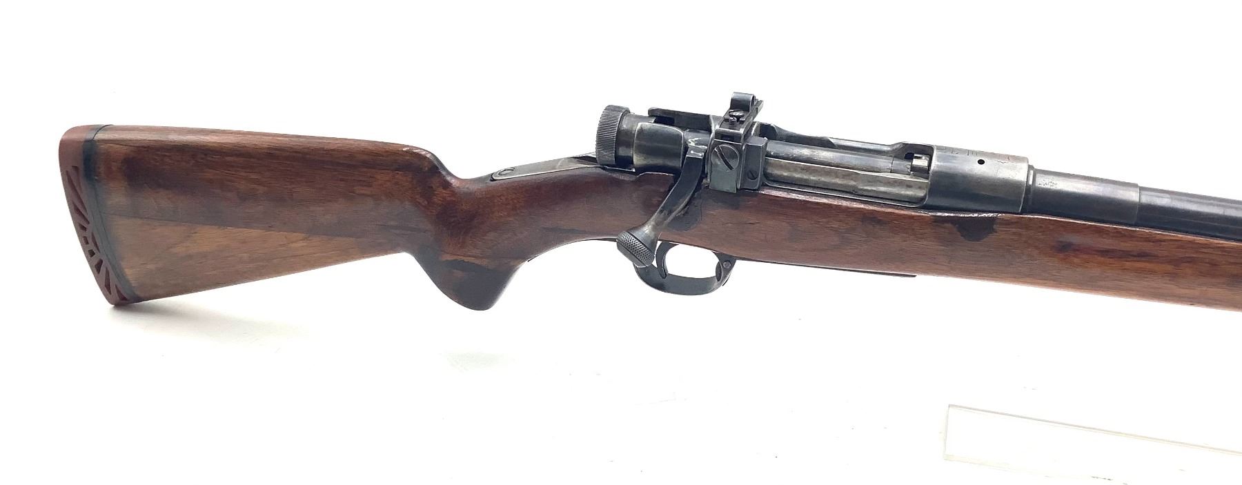 Sporterized Arisaka Bolt Action Rifle Bohler 20" Barrel Wood Stock. Consignor indicated this rifle is chambered in 6.5 Japanese but we cannot confirm. Ramp front sight, rear peep sight. Internal magazine with hinged floor plate. This is a non-restricted firearm.