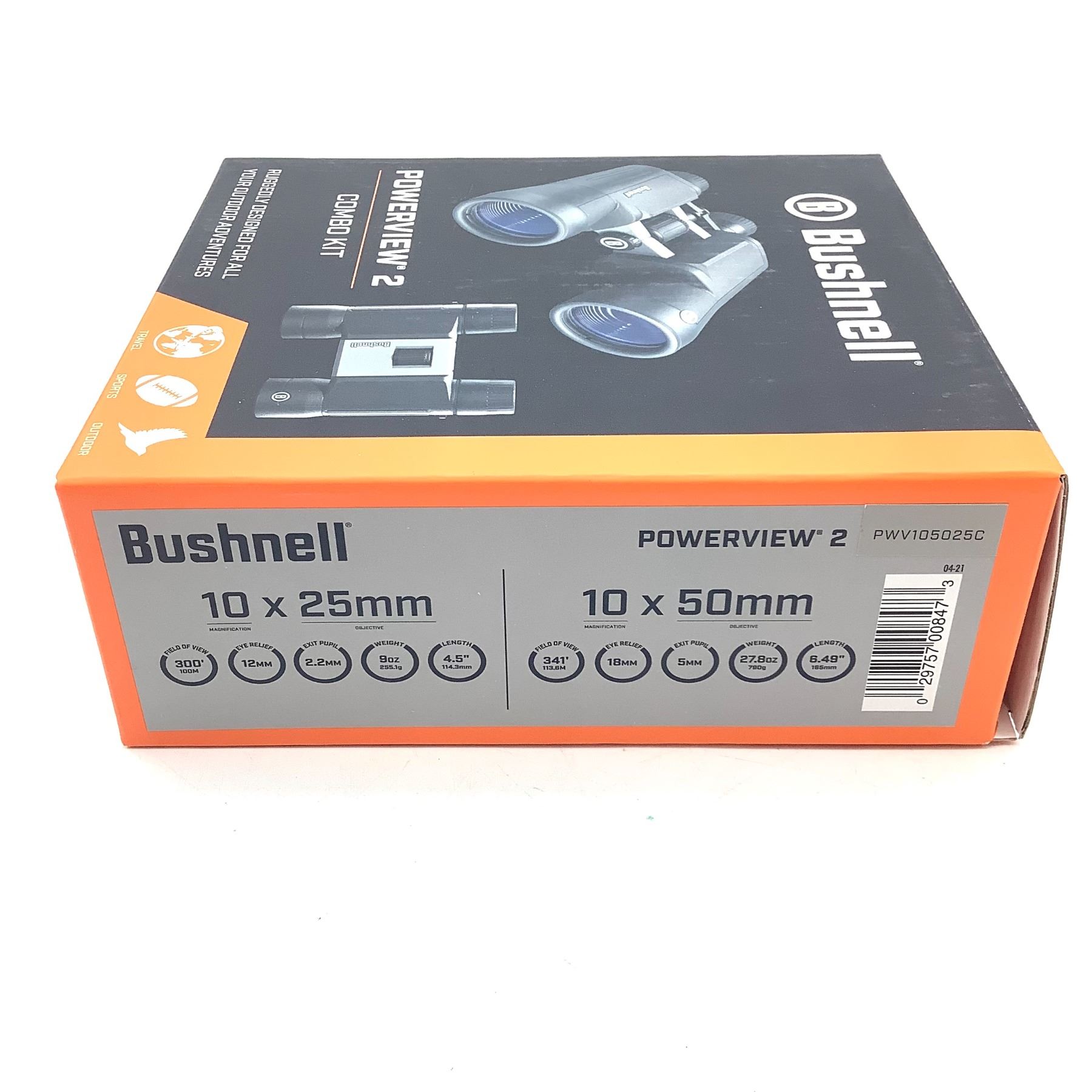 Lot 2390 Bushnell Powerview 2 Combo Kit with 10 X 25 mm and 10 X 50 mm Binocular Set, New