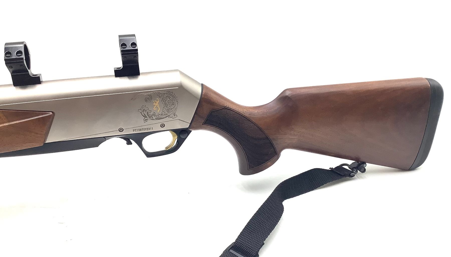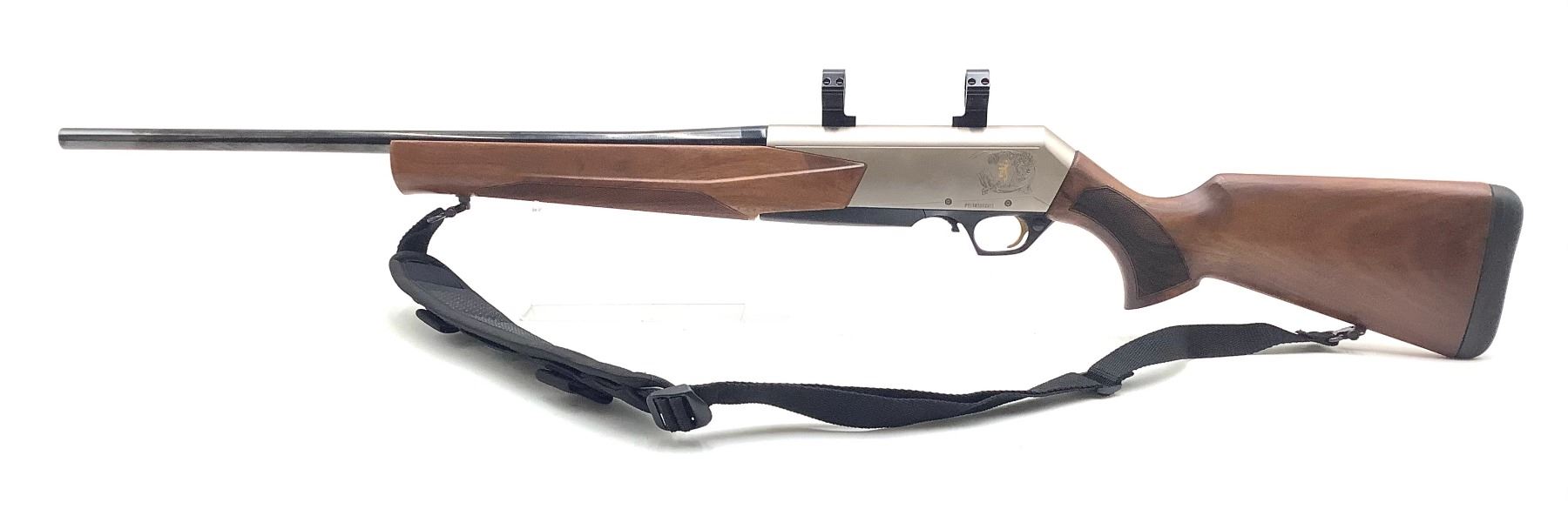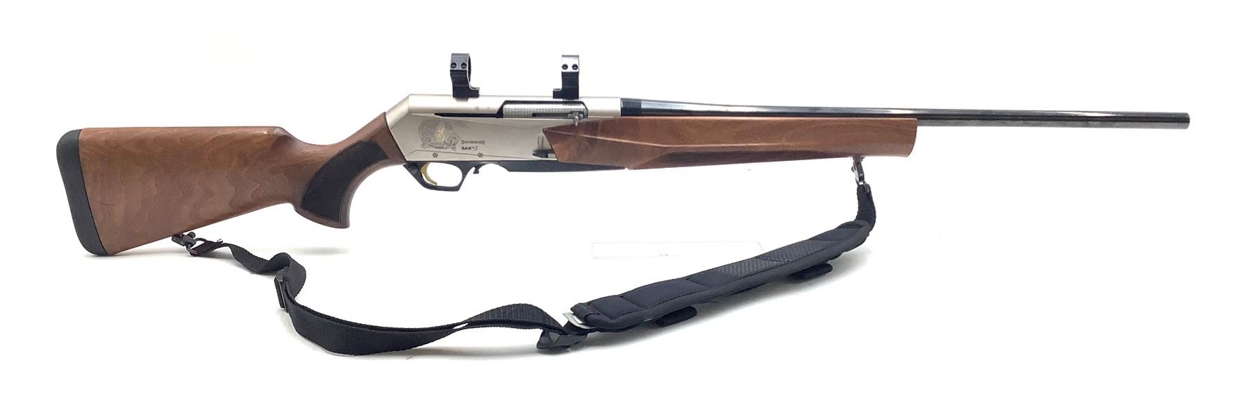 Browning BAR MK3 Semi Auto Rifle 308 Win 22" Barrel Silver Receiver Blued Barrel Wood Stock. Receiver drilled and tapped with rings installed. Hinged floor plate; no magazine present. Rubber butt pad, comes with sling. This is a non-restricted firearm.
