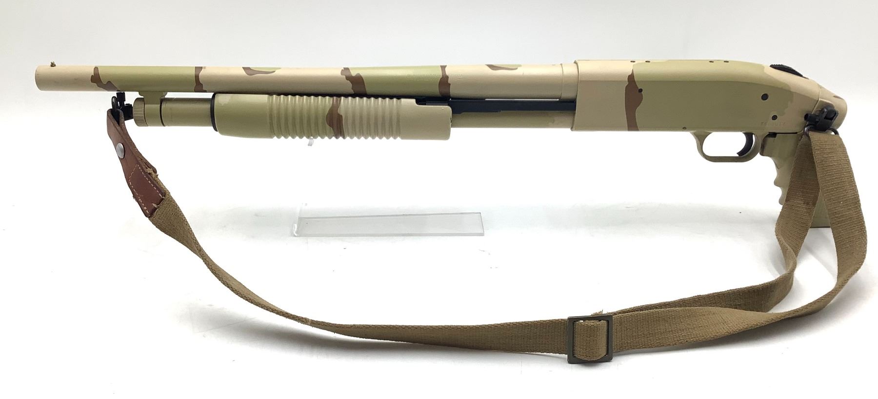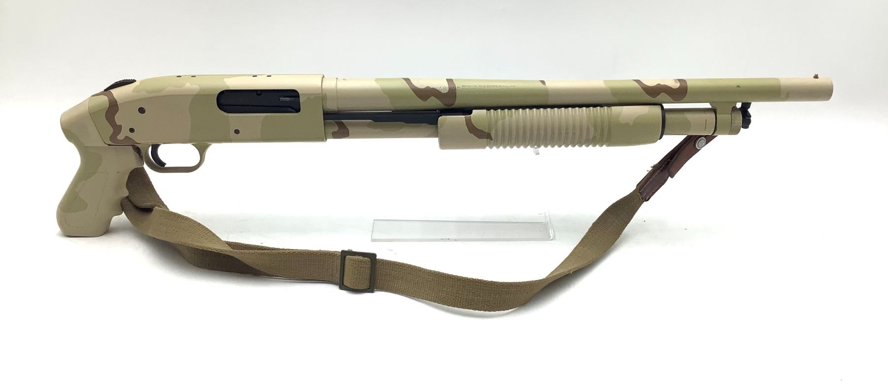 Mossberg 500 Pump Action 12 Ga Shotgun 3" Chamber 18.5" Barrel Camo Pistol Grip. Includes sling. Bead front sight. Receiver drilled and tapped. This is a non-restricted firearm.