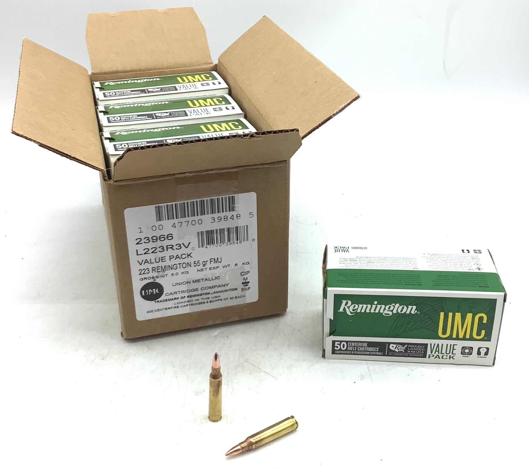 Remington 223 Rem 55 Gr FMJ Ammunition Case Lot, 400 Rounds (8 boxes of 50 rounds)