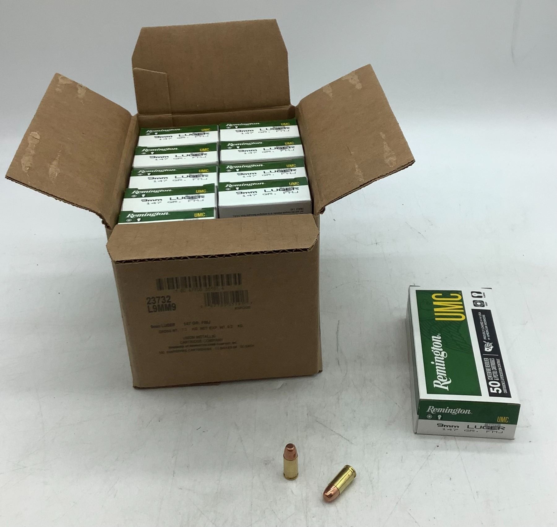 Remington 9MM Luger 147 Gr FMJ Ammunition Case Lot, 500 Rounds (10 boxes of 50 rounds)