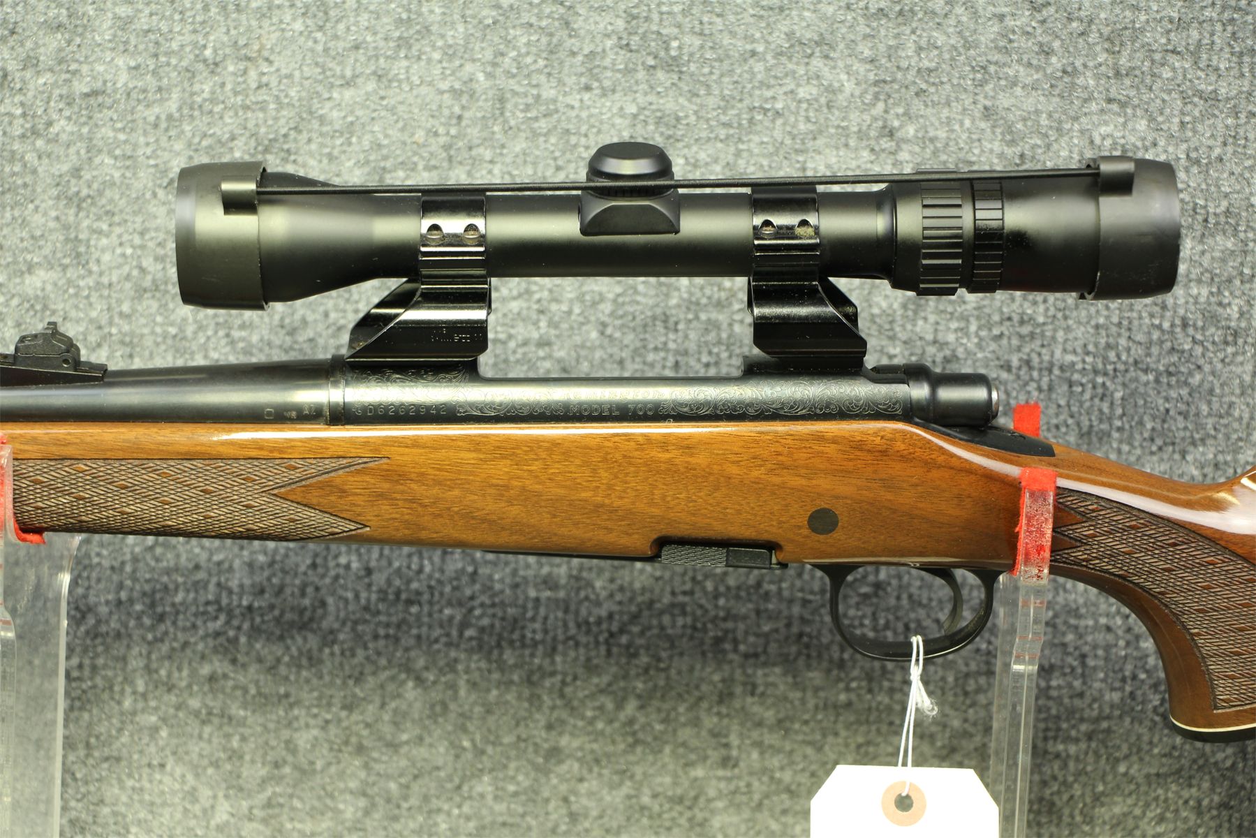 New unfired. There is not a mark on this gun. Scroll engraved receiver. Jeweled bolt. Box mag. Comes with a Bushnell 3200 Elite 3-9x scope with duplex crosshairs.