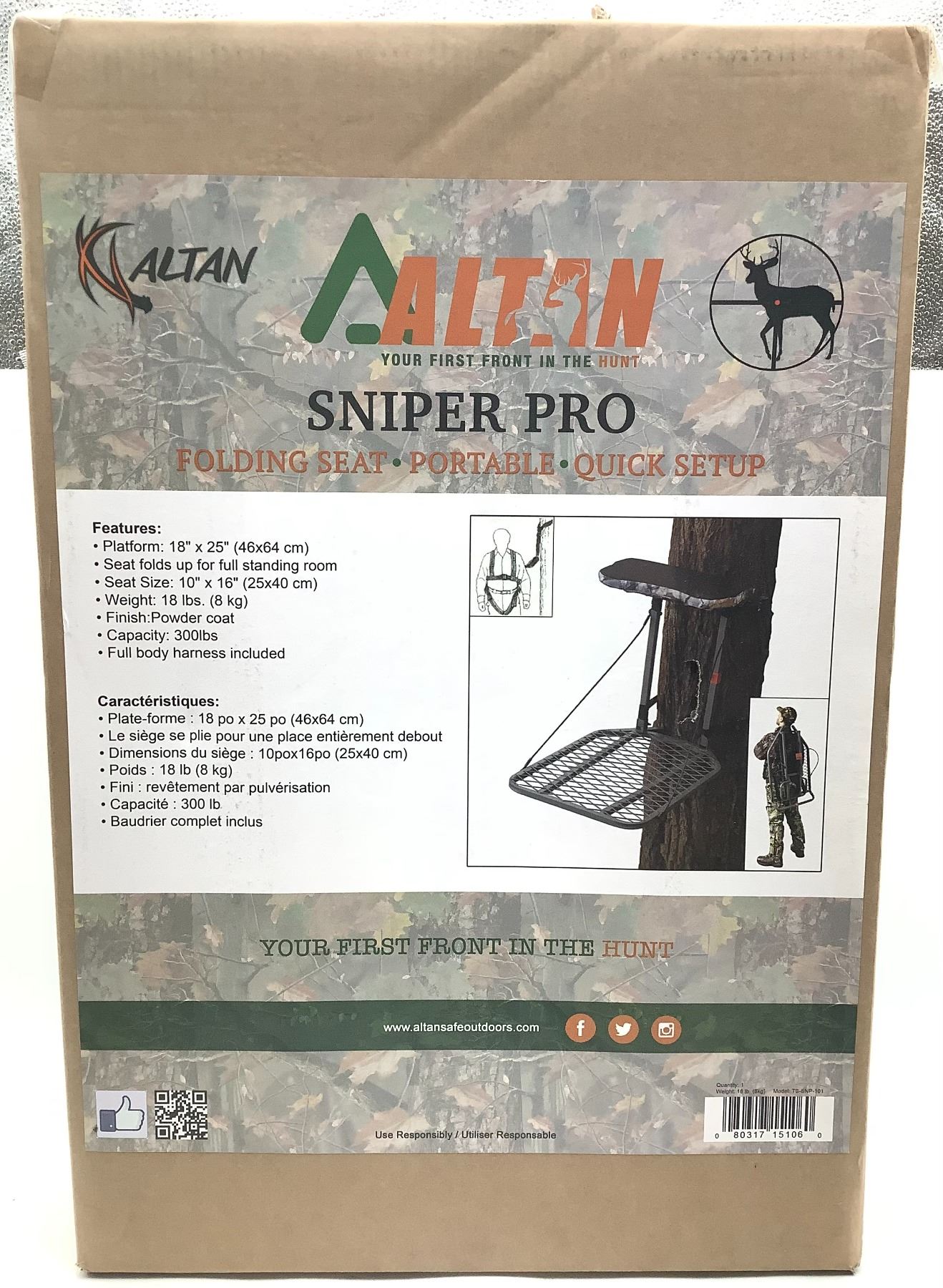 Altan Sniper Pro Folding Seat Hunting Tree Stand, 300 Lb Capacity, New