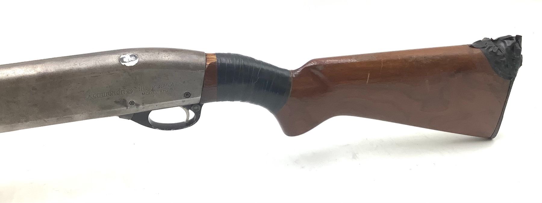 Remington 870 Wingmaster Pump Action 12Ga Shotgun 2.75" Chamber 28" Barrel Wood Stock. Rear stock is cracked and broken. Ejector is broken. Bead sight, fixed choke. This is a non-restricted firearm.