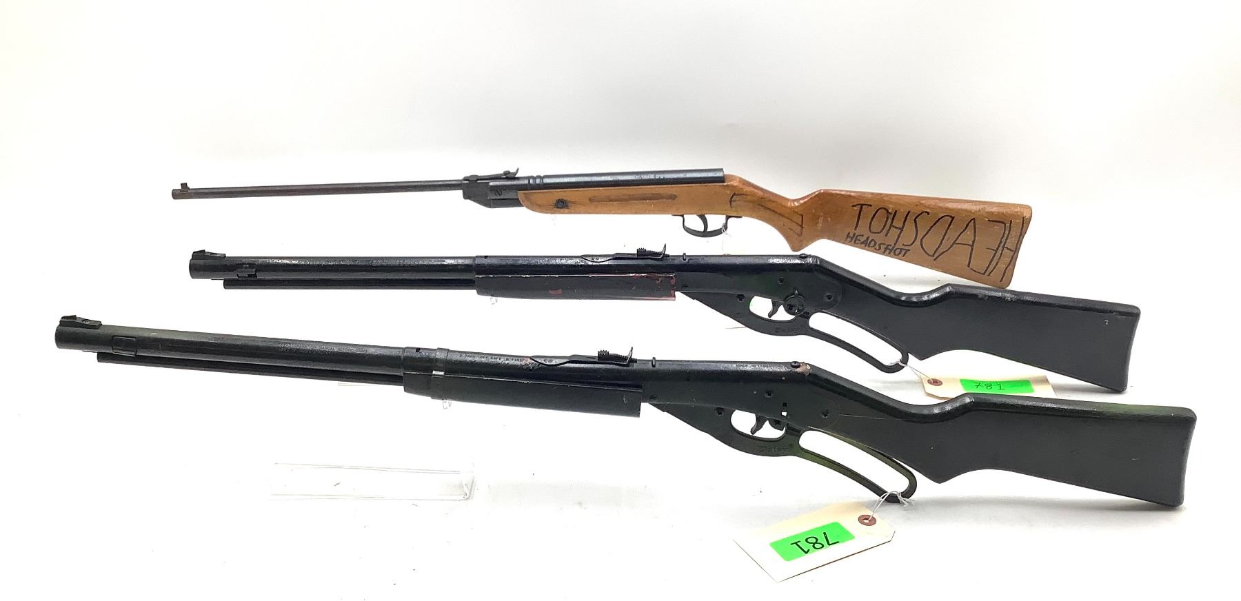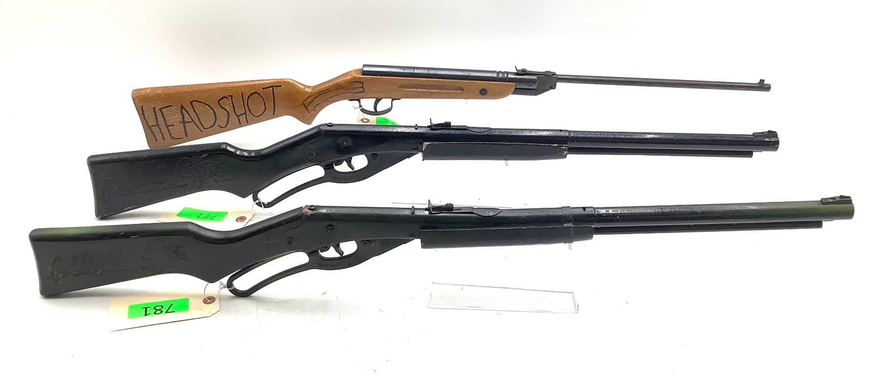 Slavia 624 Break Action .177 Pellet Air Rifle And 2 Daisy Red Ryder Lever Action BB Guns. Untested. Stocks have cracks and metal finish shows wear. You must be over 18 years of age to purchase these items.