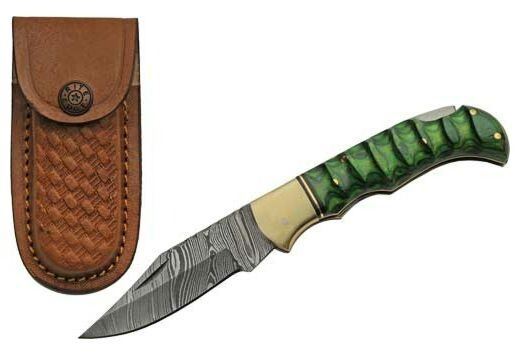 Lot 213 SZCO RITE EDGE 3" GREEN GROOVED WOOD DAMASCUS LOCKBACK