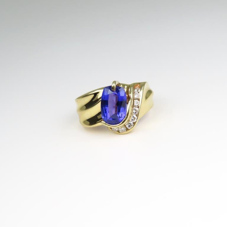 Lot 784a Striking Contemporary Tanzanite and Diamond Ring
