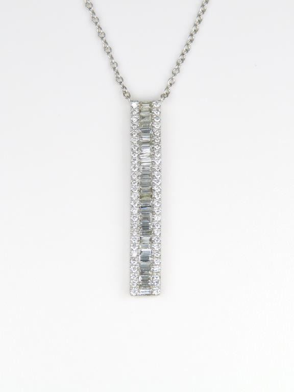 featuring over 90 round and baguette cut Diamonds weighing approx. 1.50 carats with F-G colors and VS/SI clarity set in a 14 karat white gold setting.