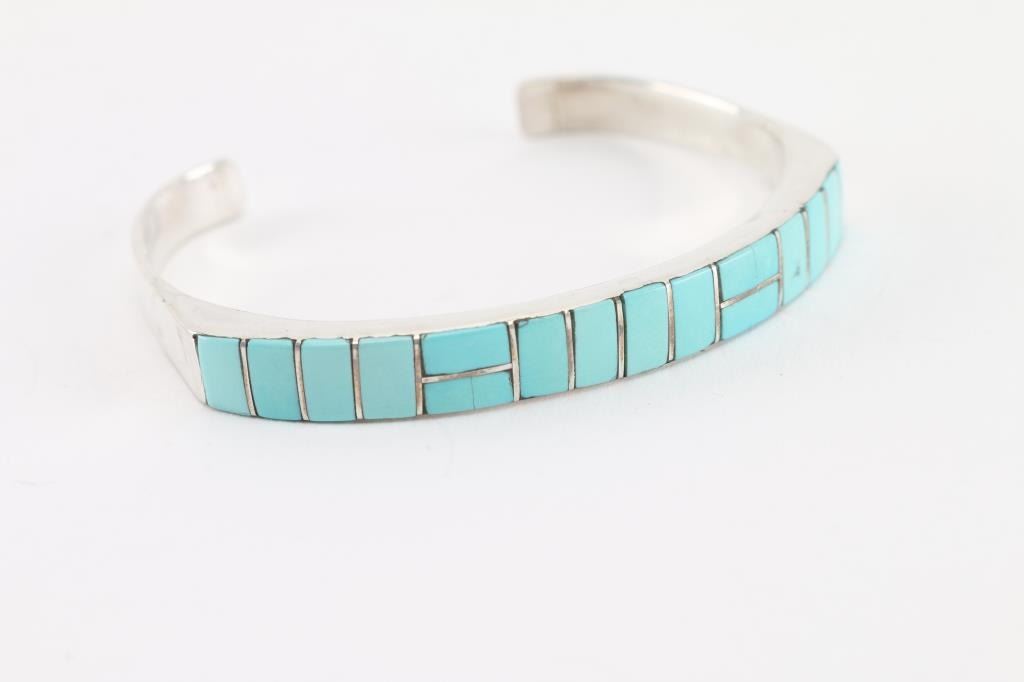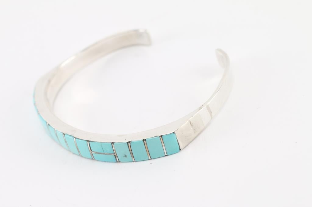 Lot 1076 Zuni Inlaid Turquoise Cuff