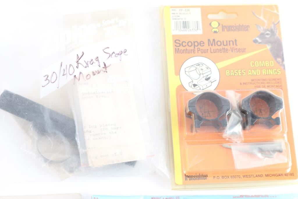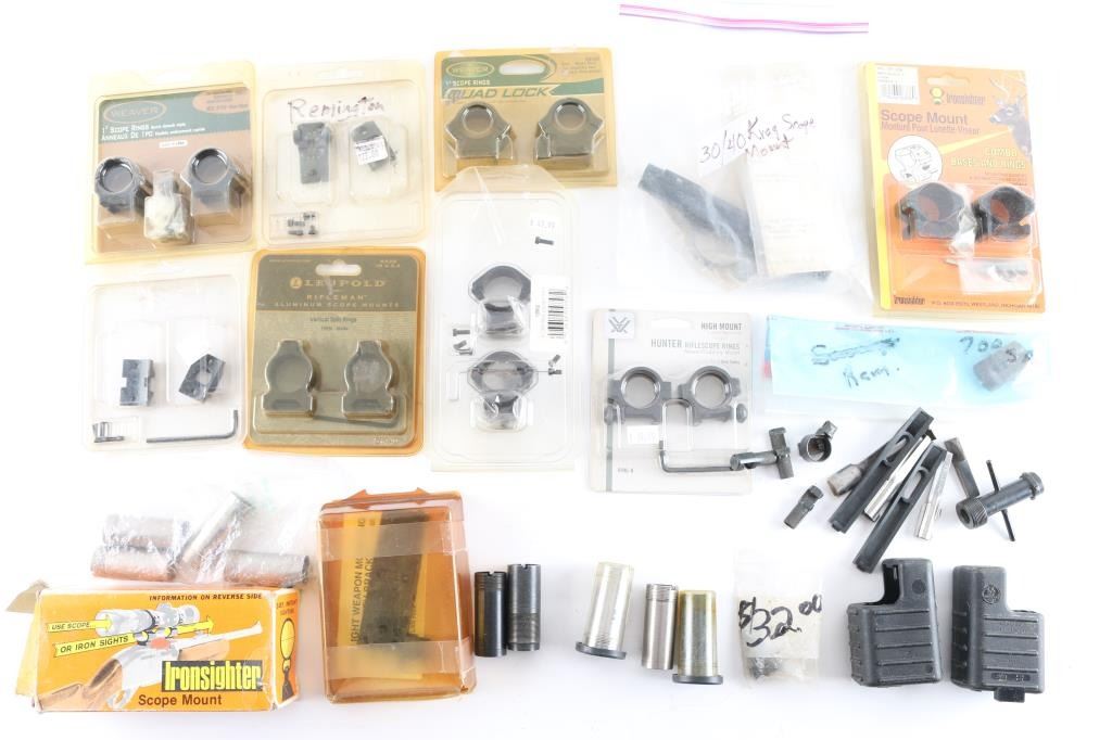 Includes Weaver 40mm-42mm, Leupold scope mounts, an two ironsighter combo base an rings.(1.) Mini light weapon mount cap with bracket.(1.) High mount 31mm Vortex hunter Riflescope rings.(1.) Two Remington iron sights.(1.)Several skeet cylinders and more for sights.